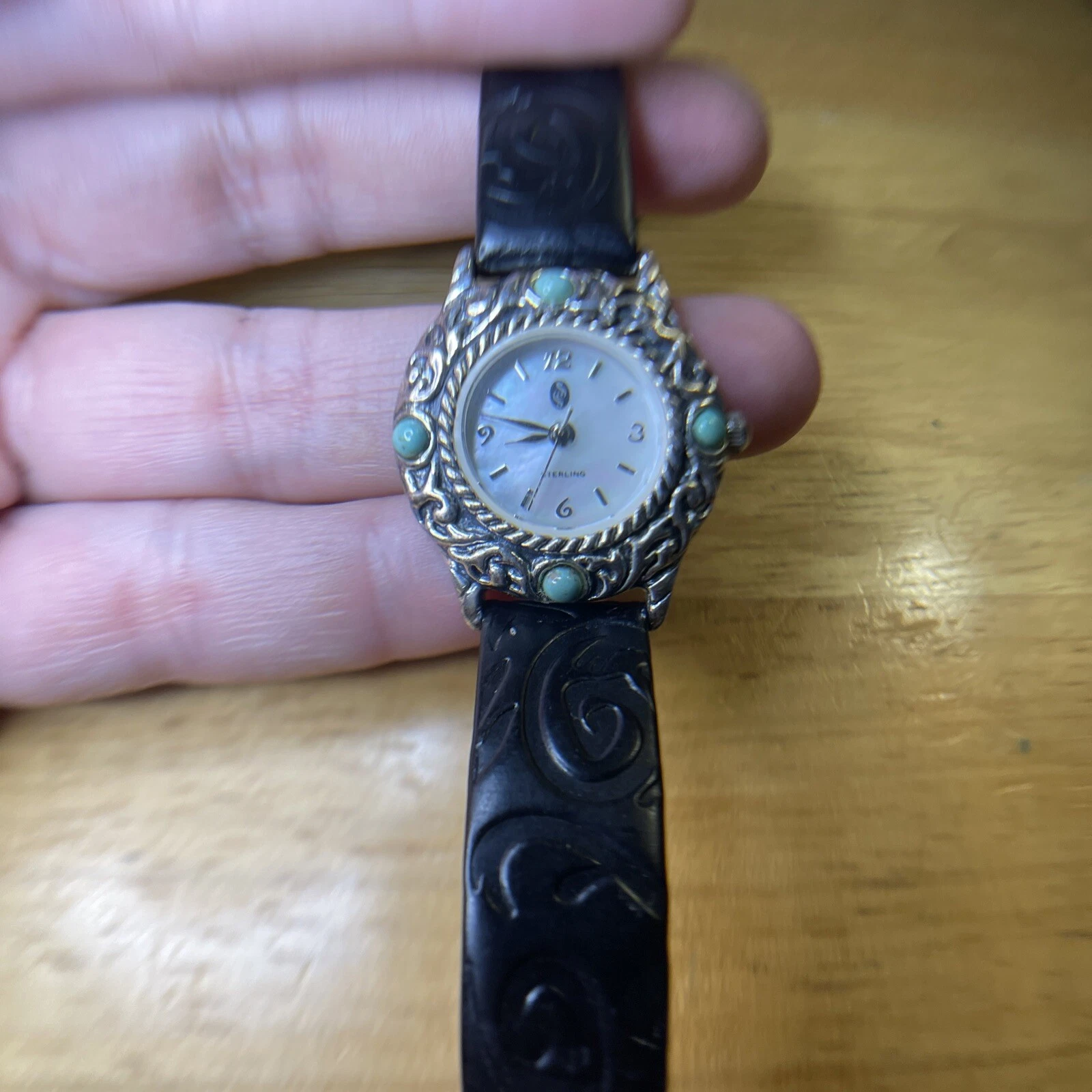 Carolyn Pollock Relios 925 silver watch with leather band, Simply Southwest