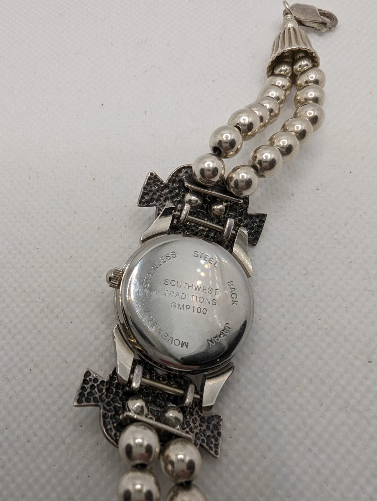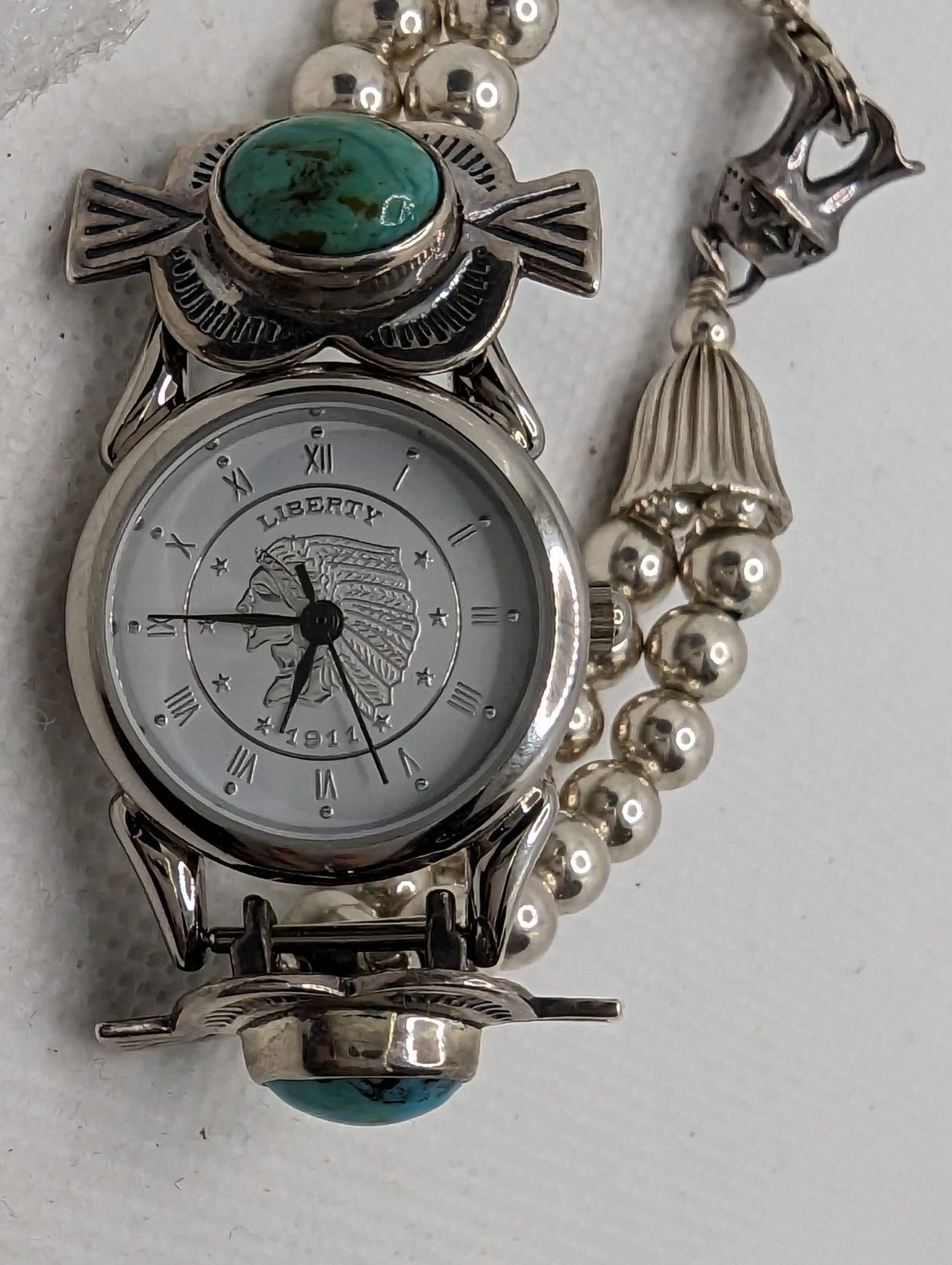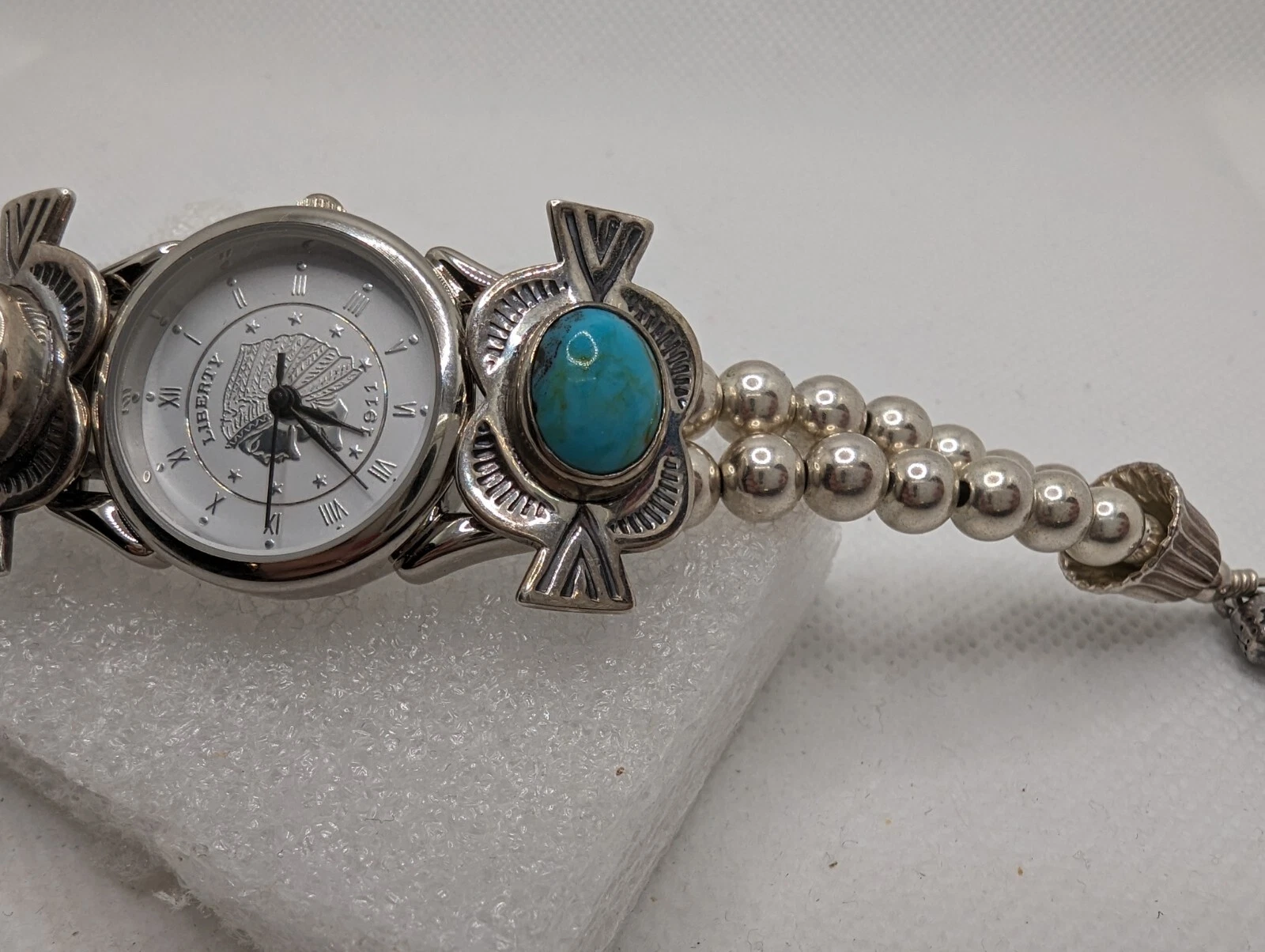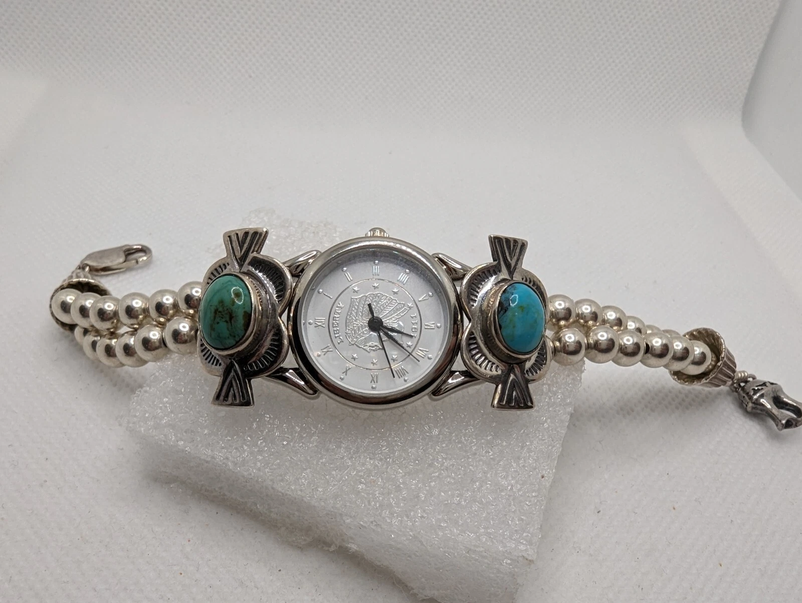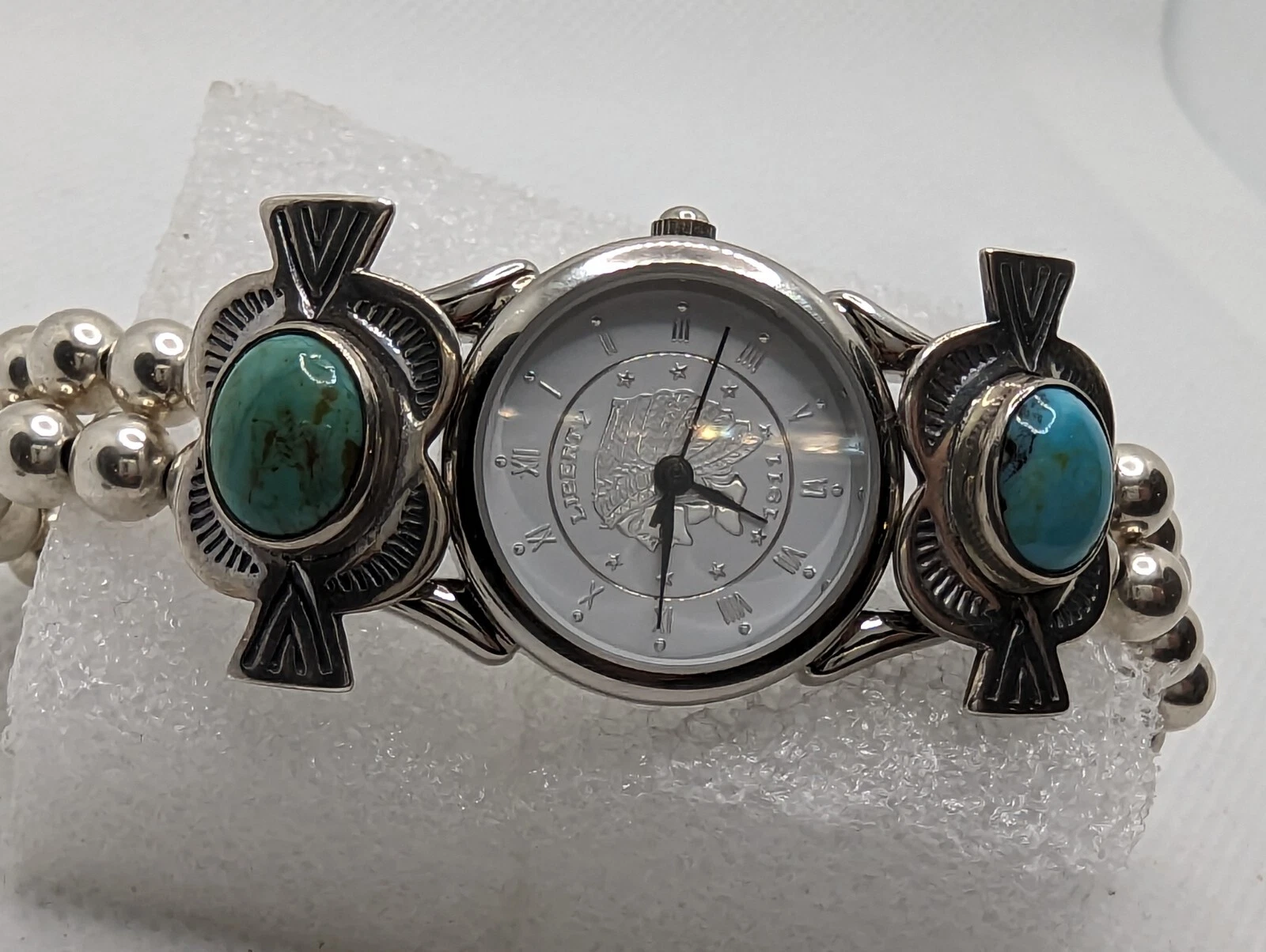 Carolyn Pollack Southwestern Traditions Sterling Turquoise Concho Wings Watch 7"