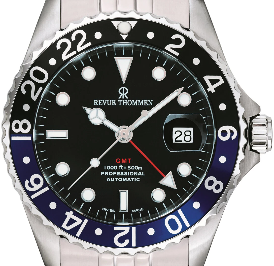 Revue Thommen 17572.2233 GMT Diver Automatic black blue silver Men's Watch NEW