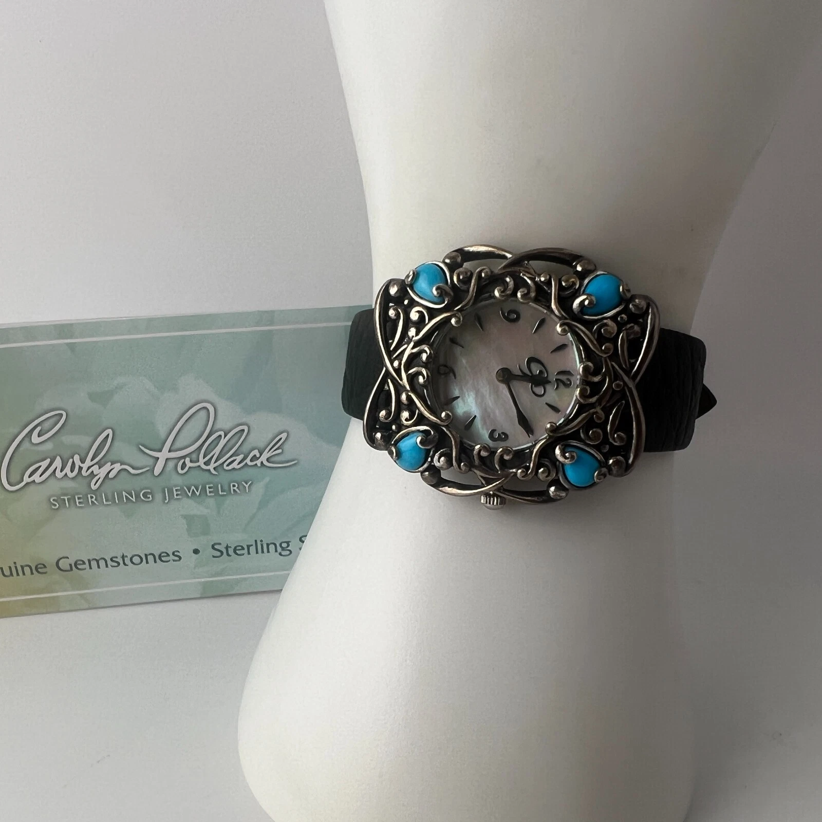 Carolyn Pollack Sterling Silver Watch with Leather Band