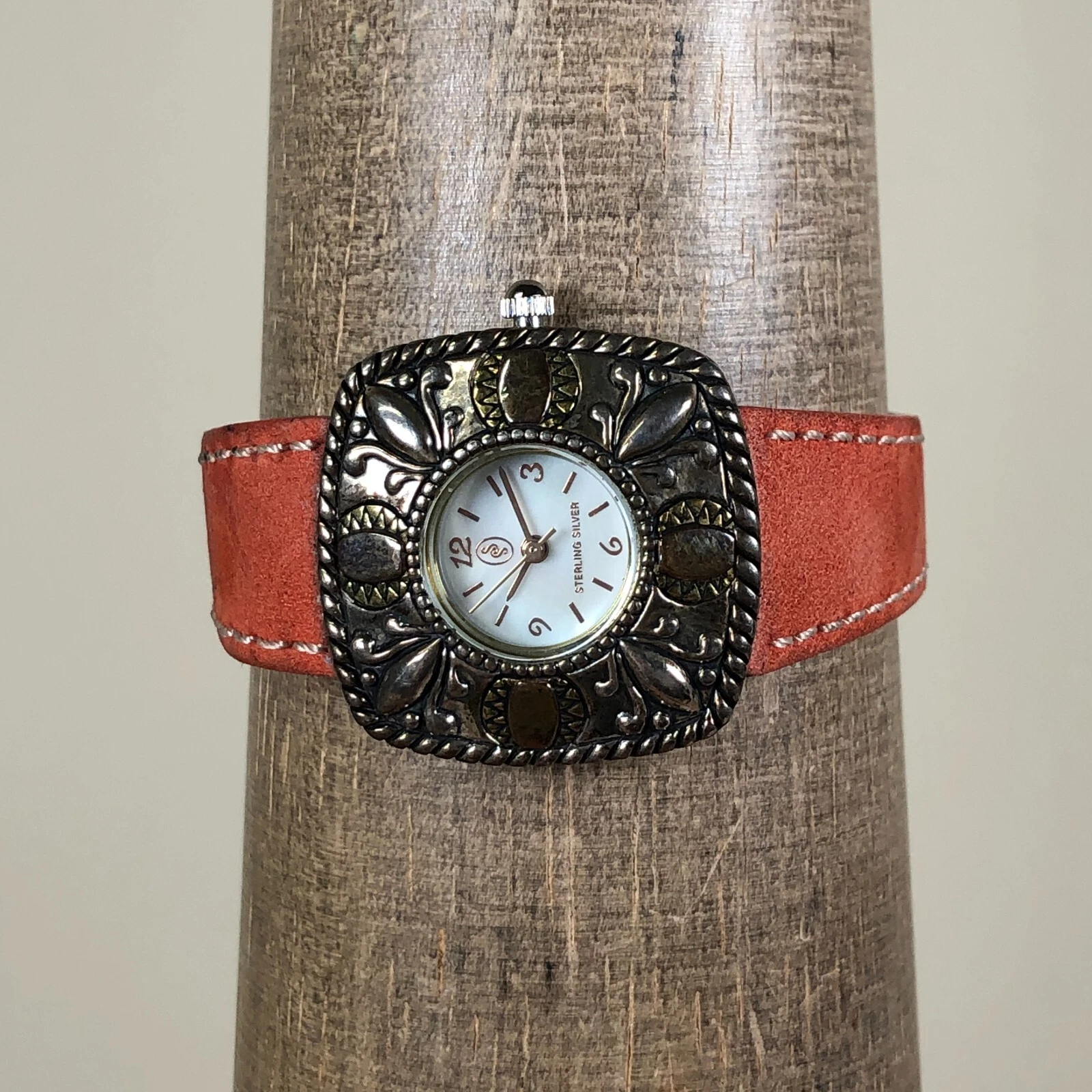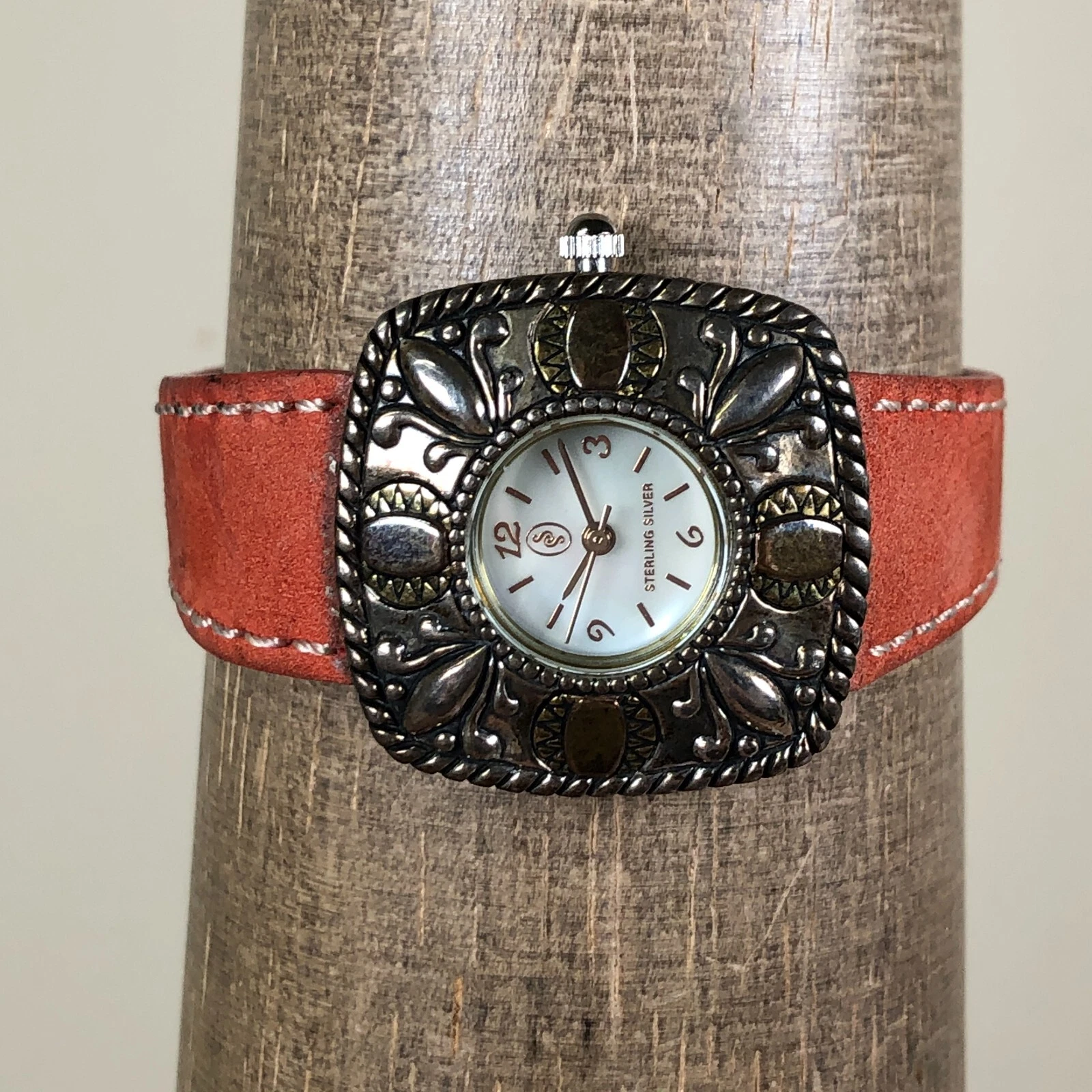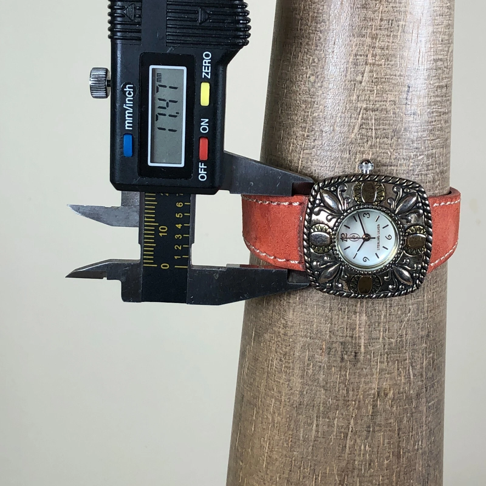 Carolyn Pollack Women 925 Sterling Silver Orange Leather 29mm Quartz Watch6 3/4"