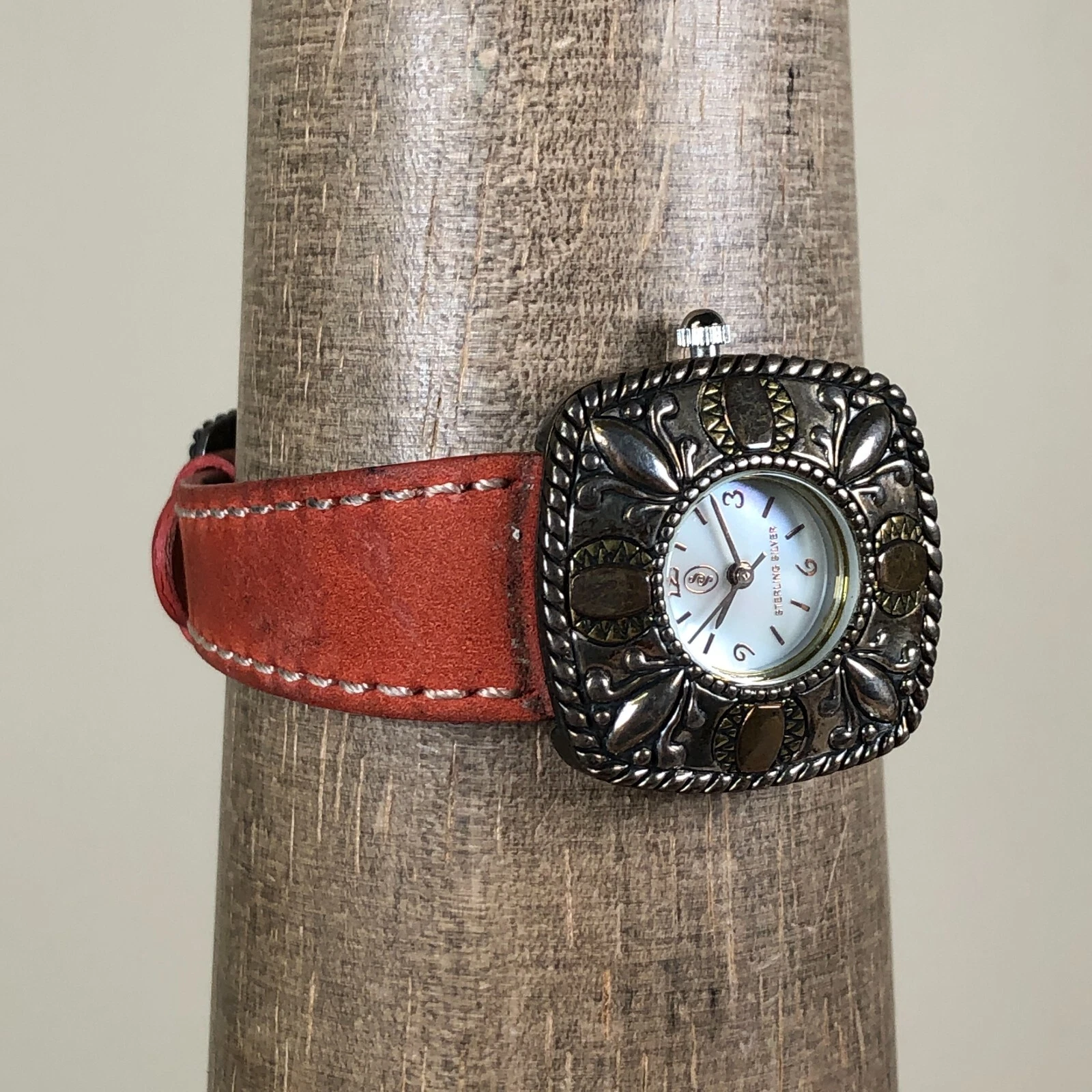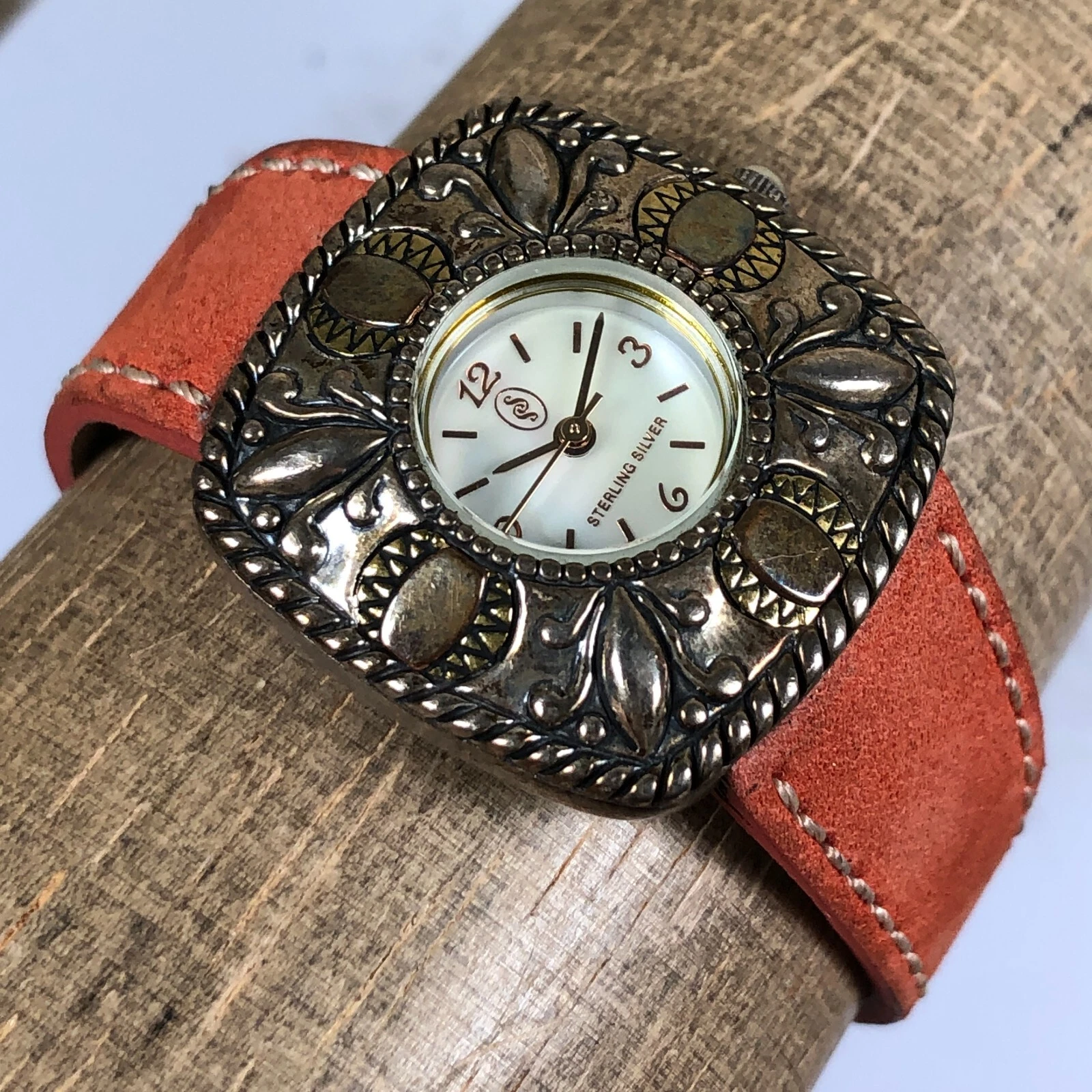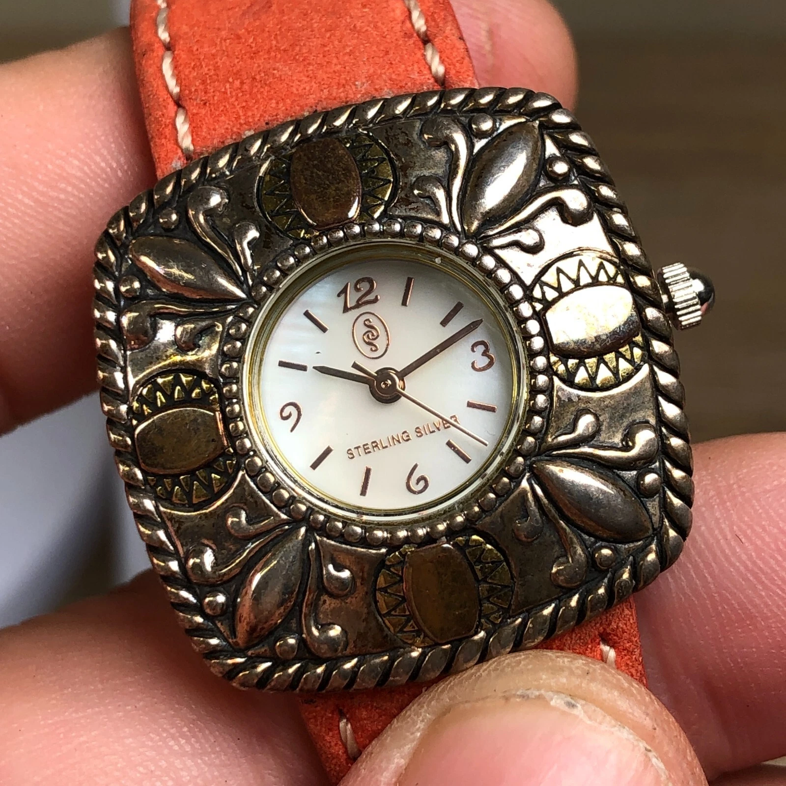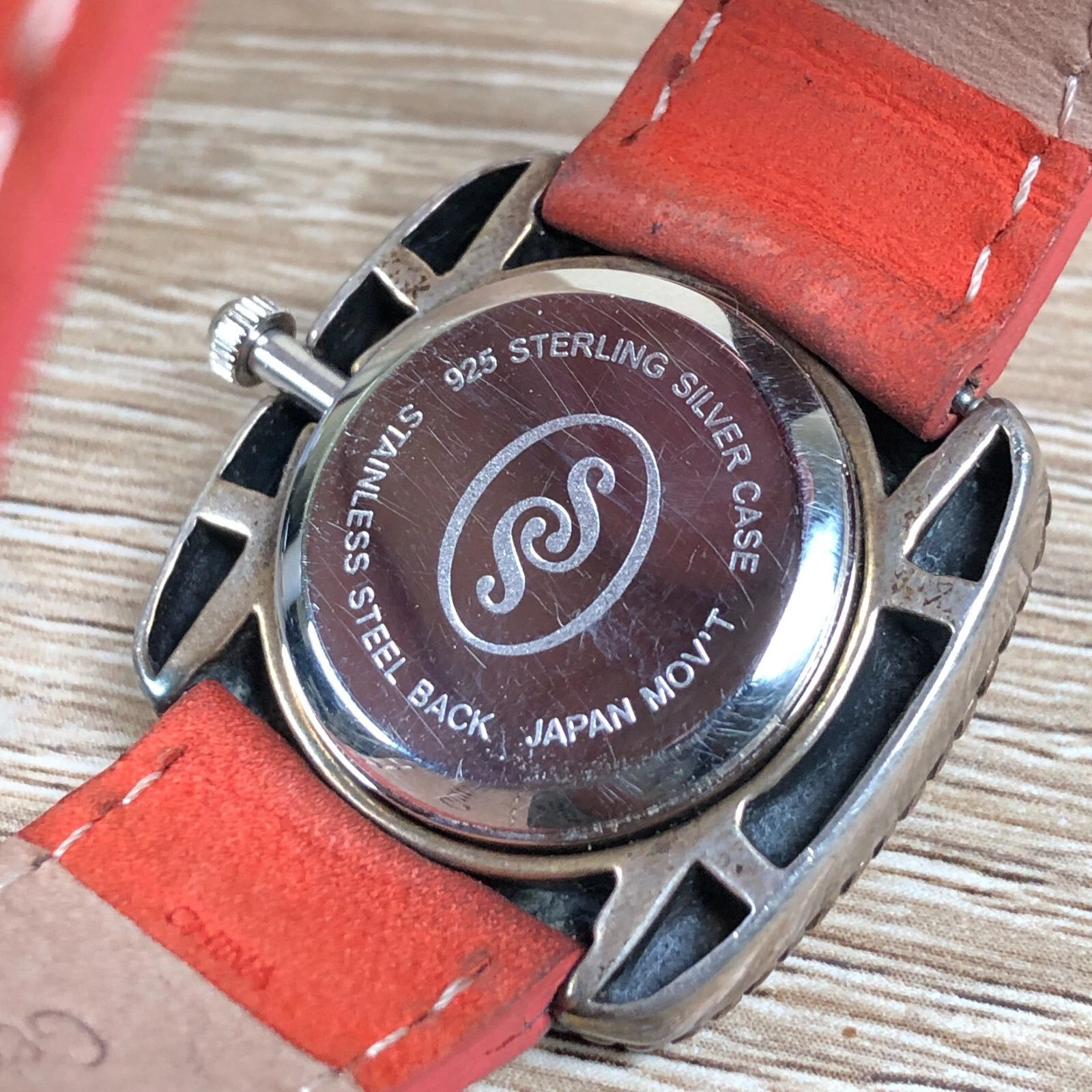 Carolyn Pollack Women 925 Sterling Silver Orange Leather 29mm Quartz Watch6 3/4"