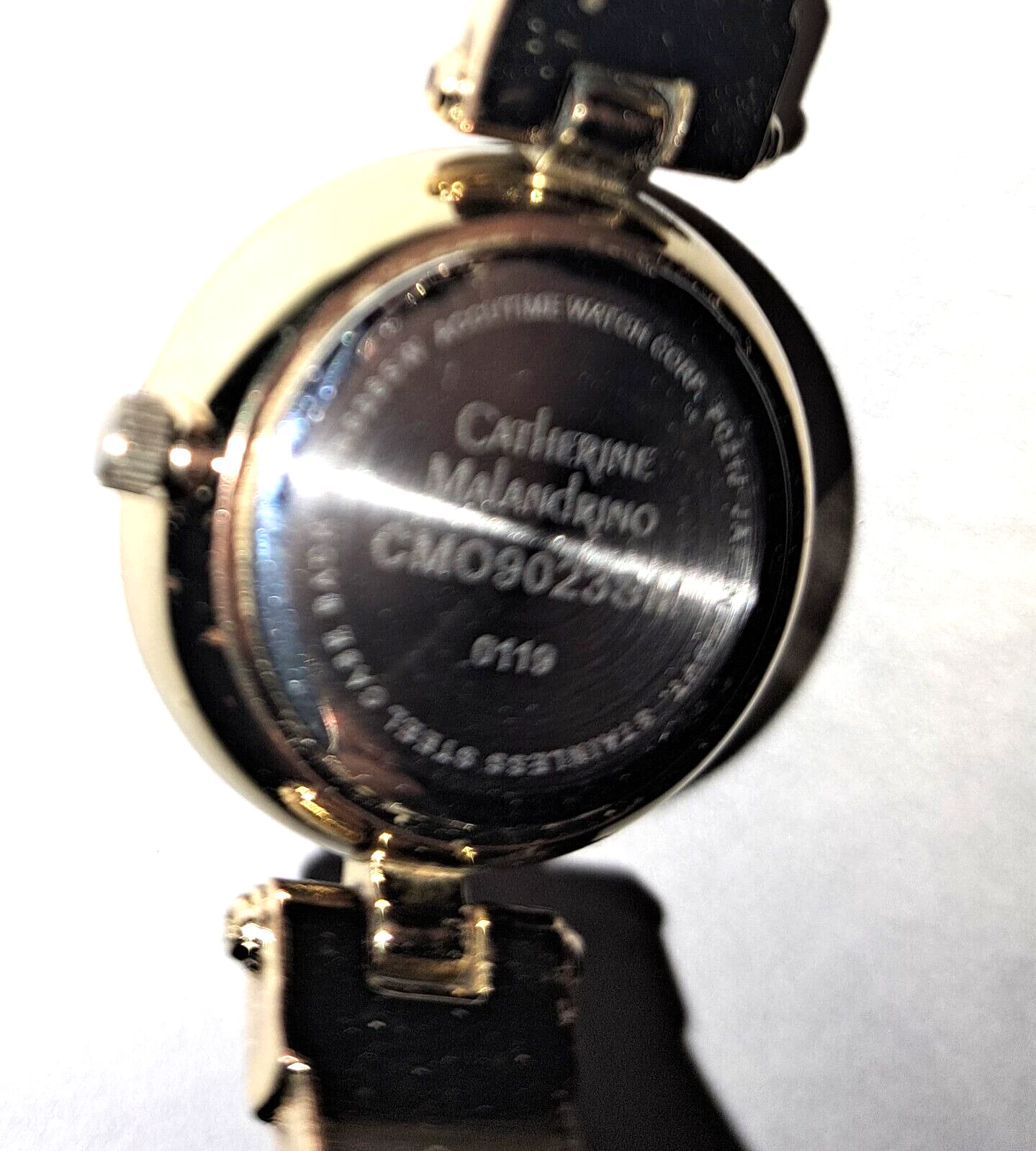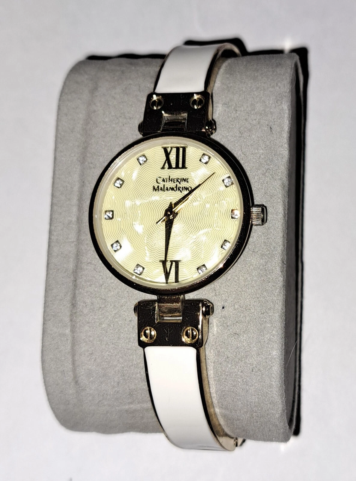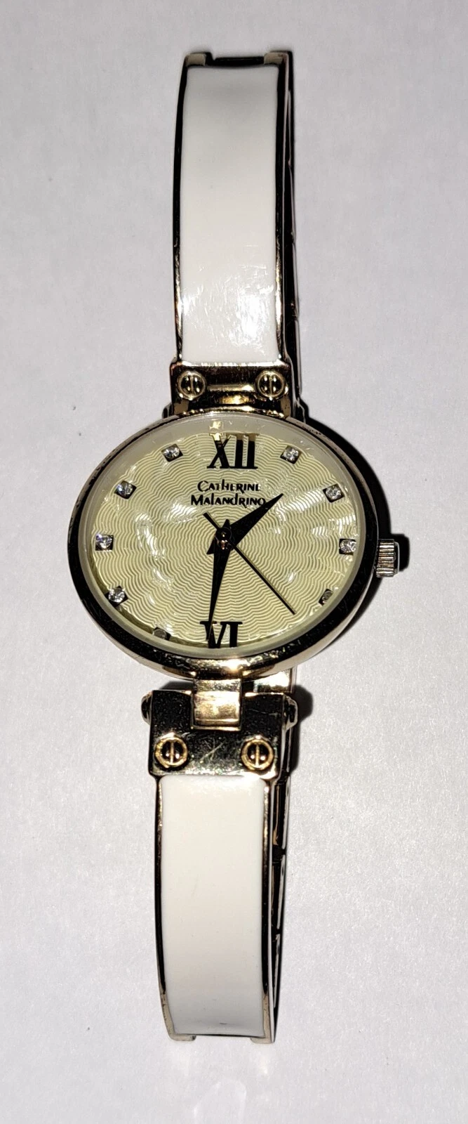 Catherine Maldanrino Women's Watch Gold Toned White Enamel Band New Battery