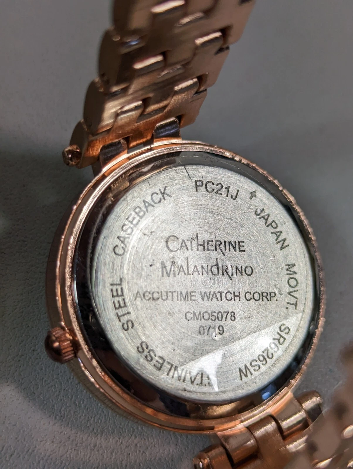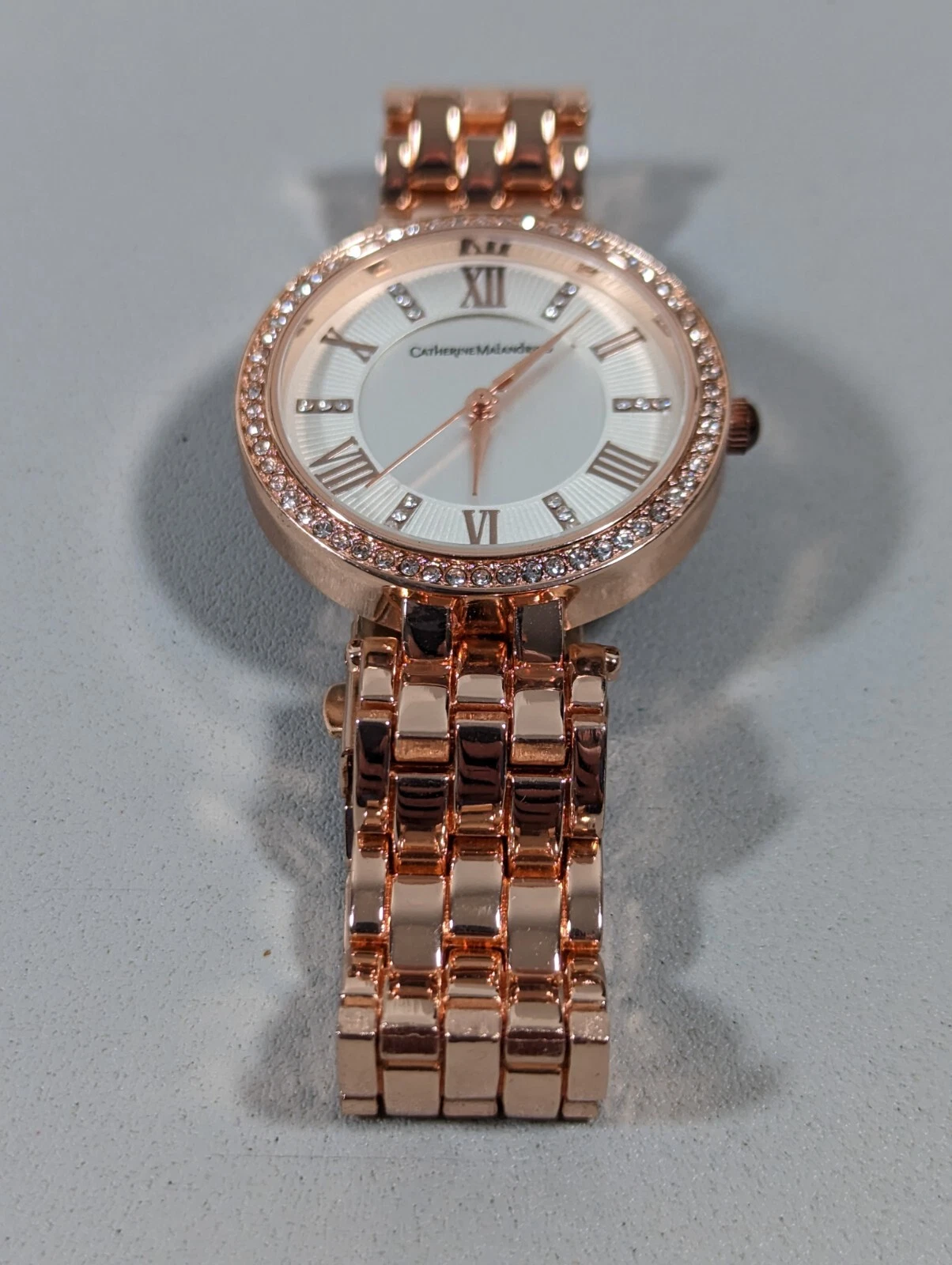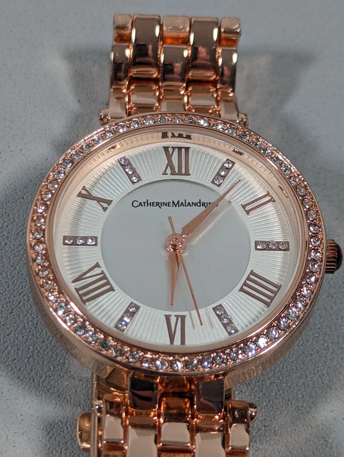 Catherine Maladrino Silver Tone Dial Crystal Accent Round Rose Gold Tone Watch
