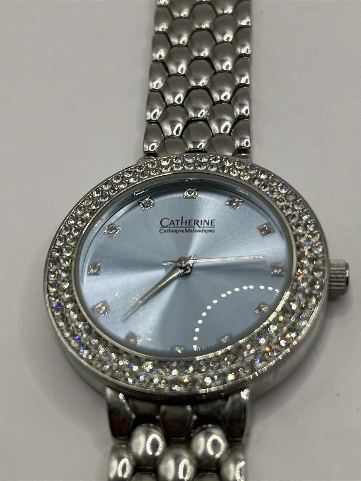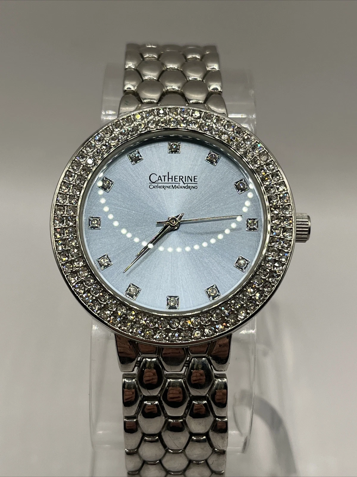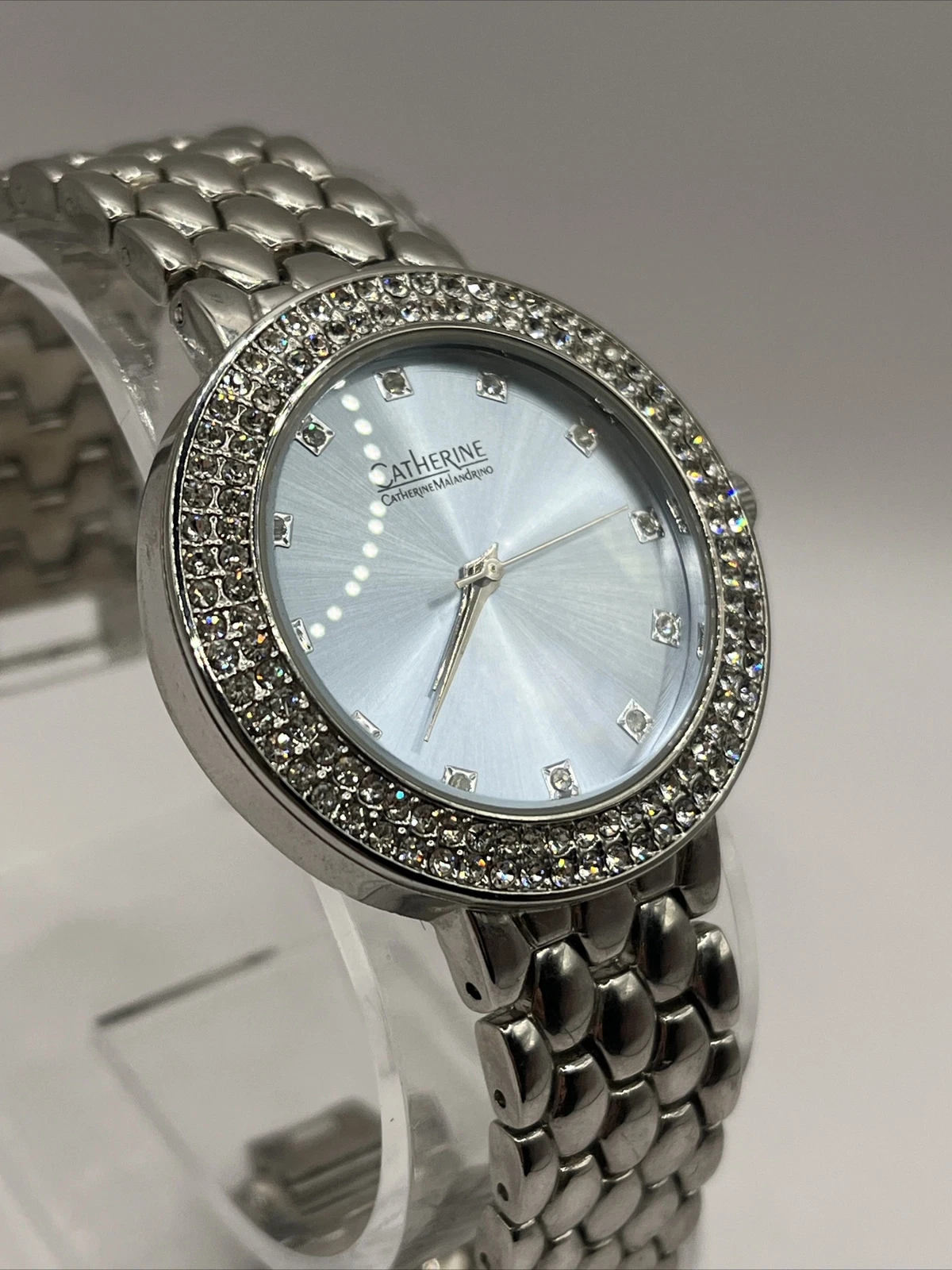 Catherine Malandrino Women's Quartz Watch Silver Rhinestone Bezel- New Battery