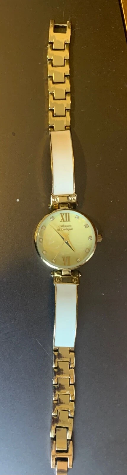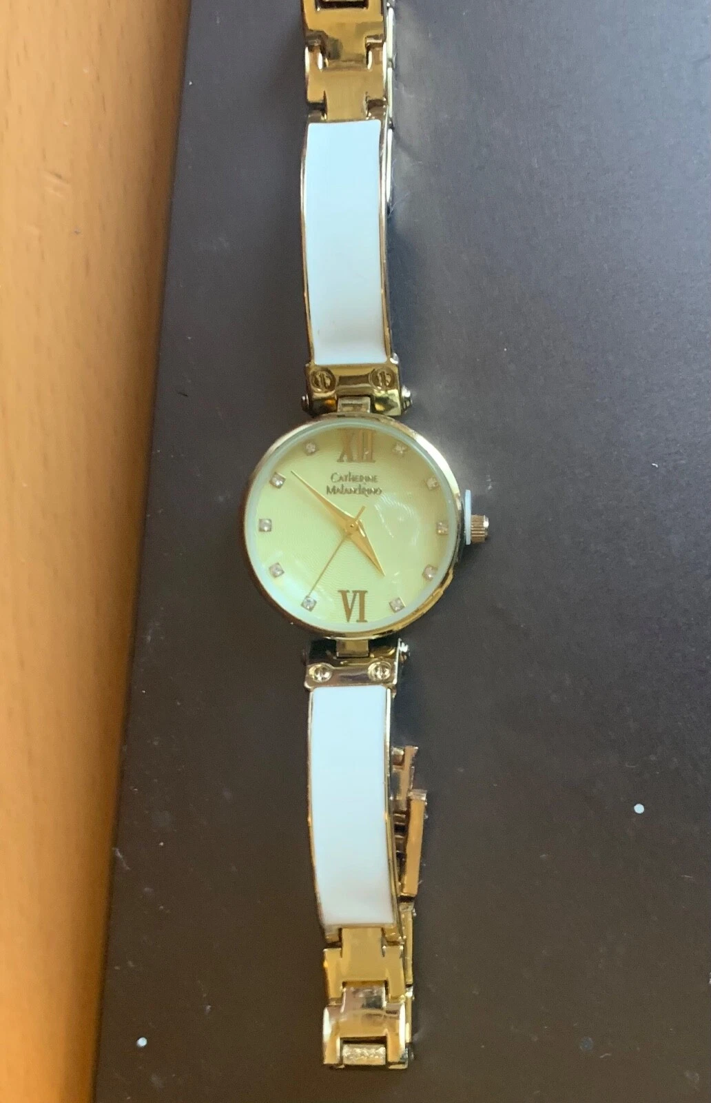 Catherine Maldanrino Women's Watch Gold Toned White Enamel Band New