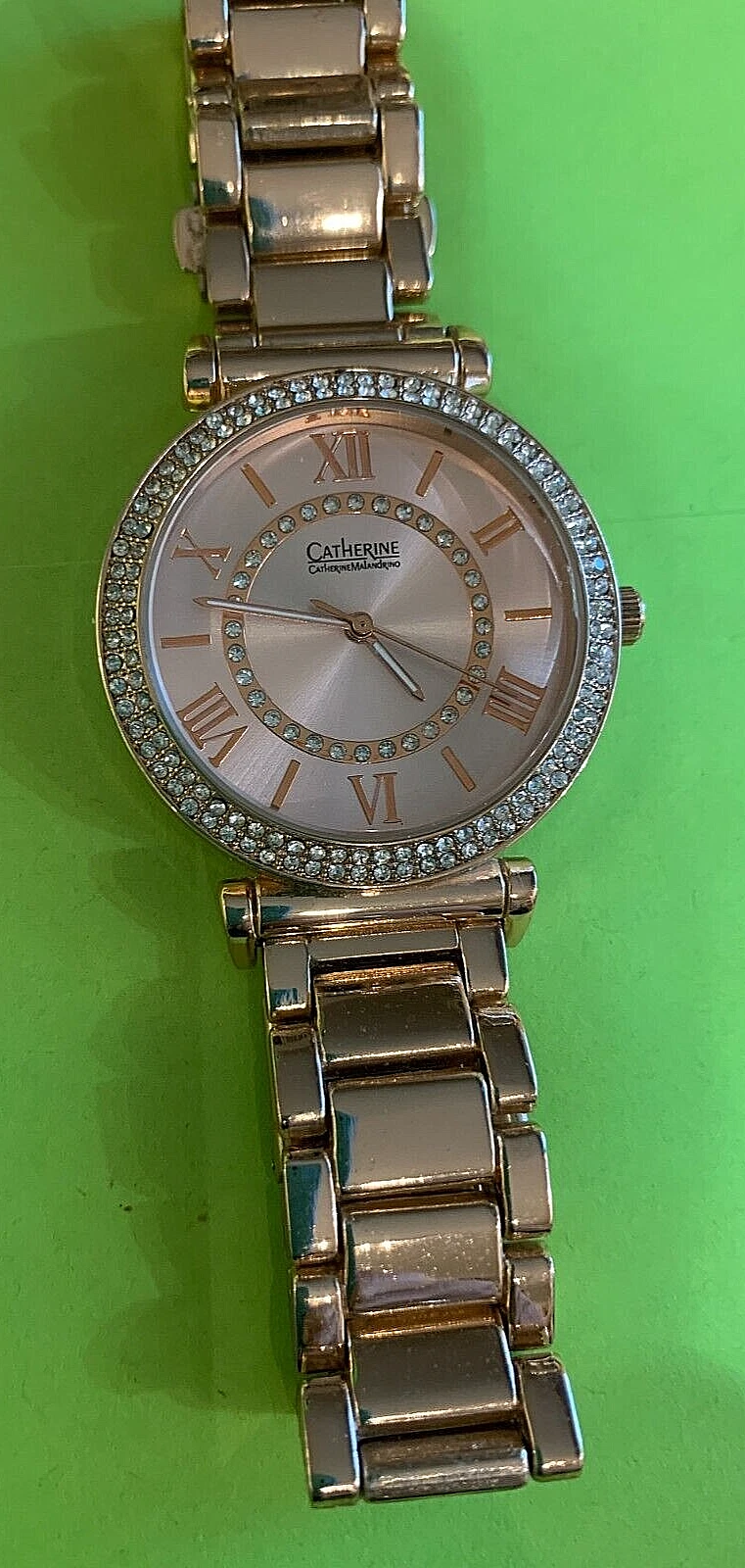 Rose Gold Catherine Malandrino Watch Double Crystal Bezel & Crystal On Inside