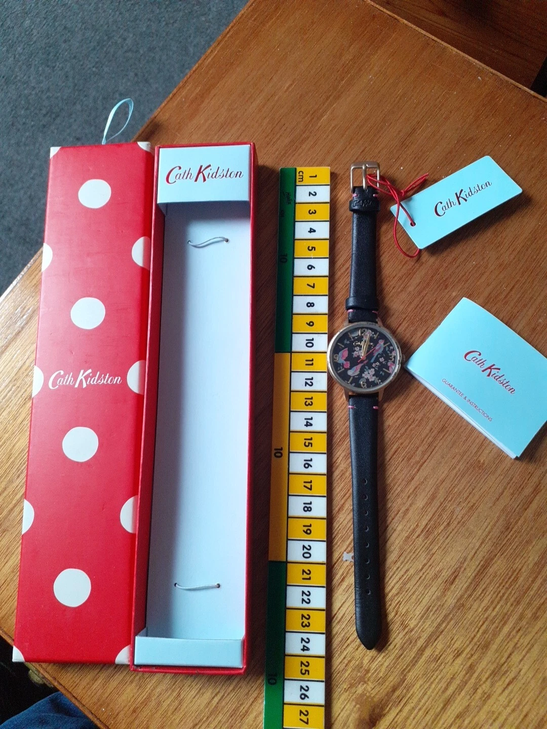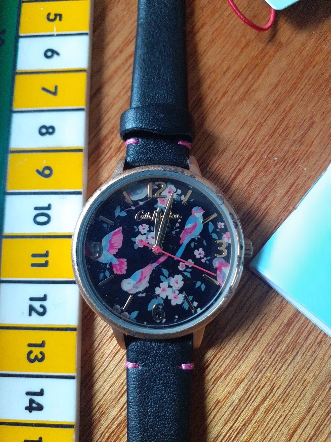 Cath Kidston Ladies Watch With Box & Papers, Coloured Birds On A Black Dial