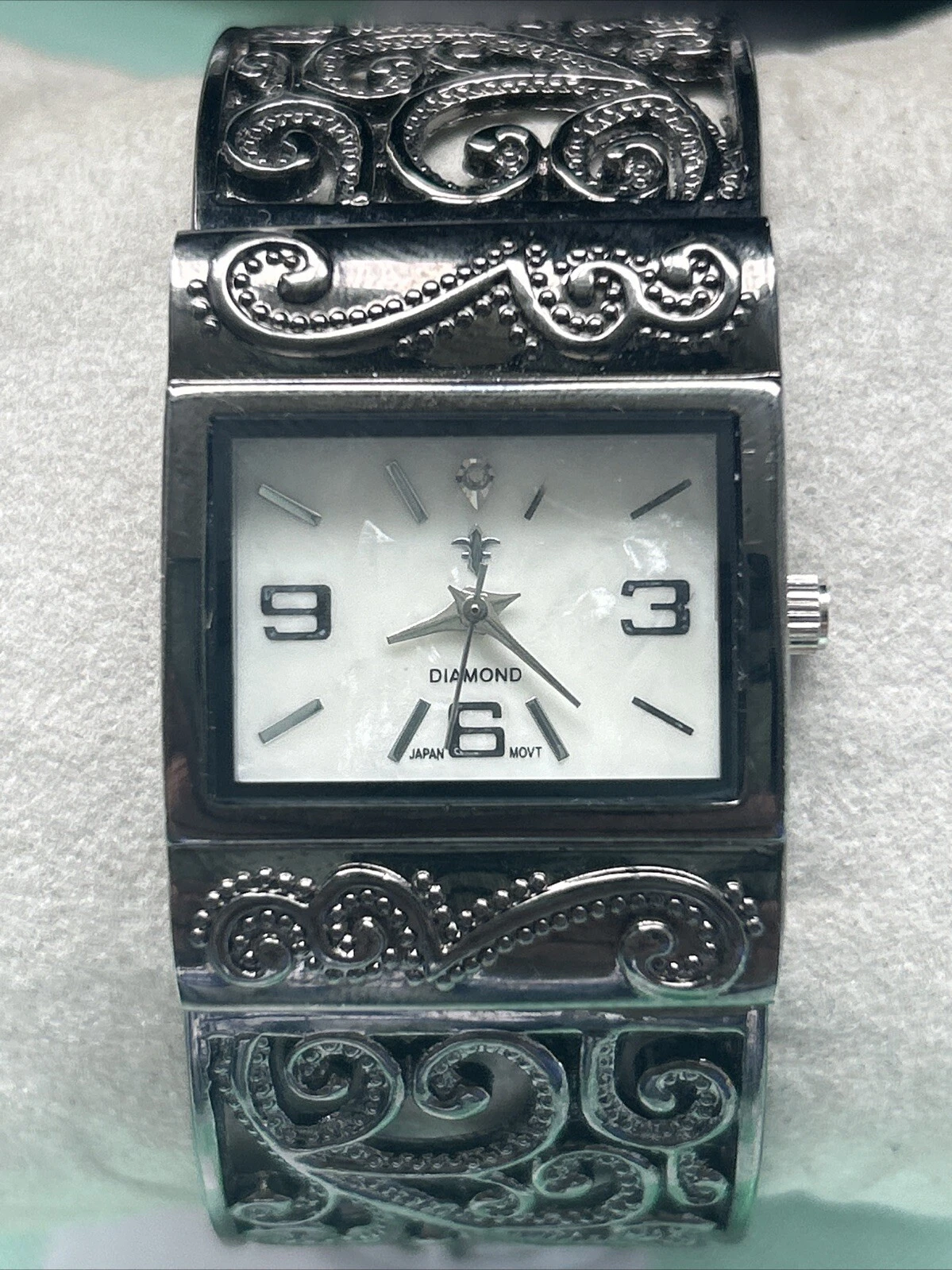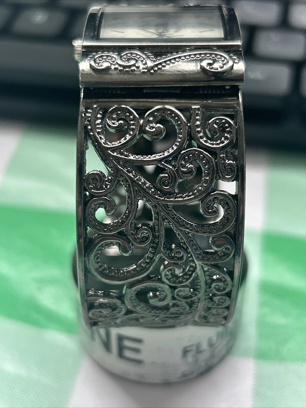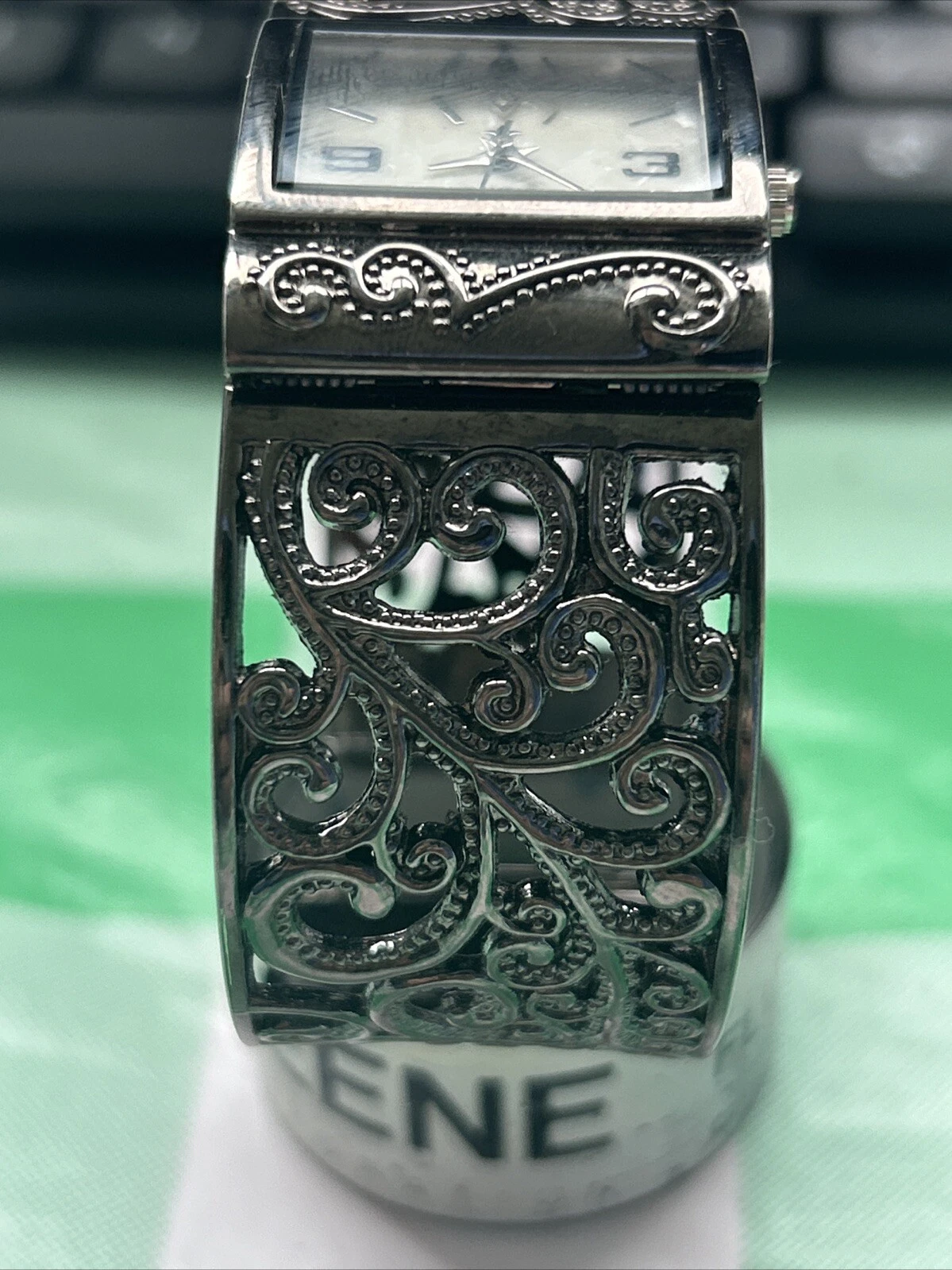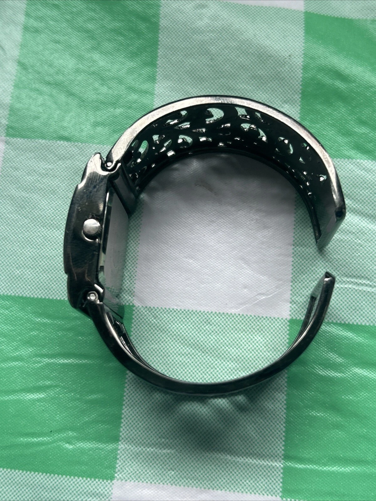 Cato Accutime Dark Silver/ Black Tone Women’s Cuff Watch