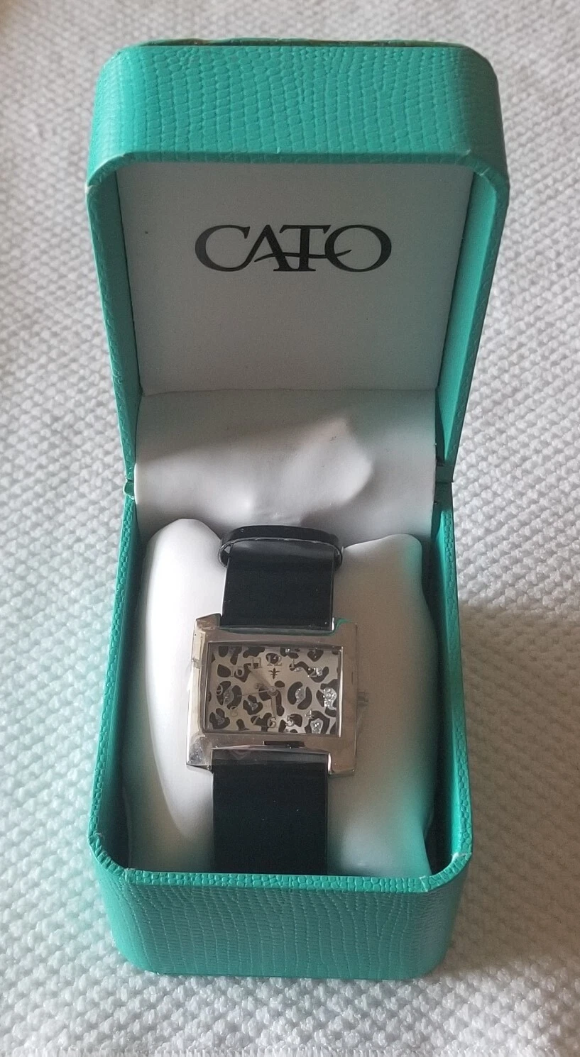 NWOT Cato Silver Tone Watch Leopard Dial Faux Leather 5.5"-7"New Batt. Orig. Box