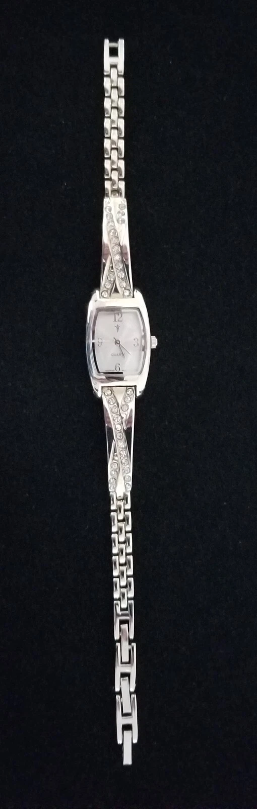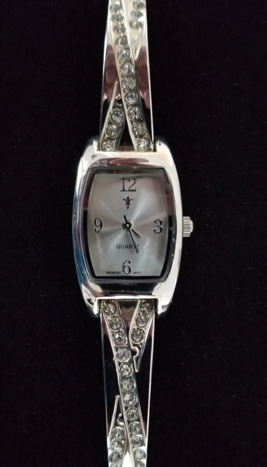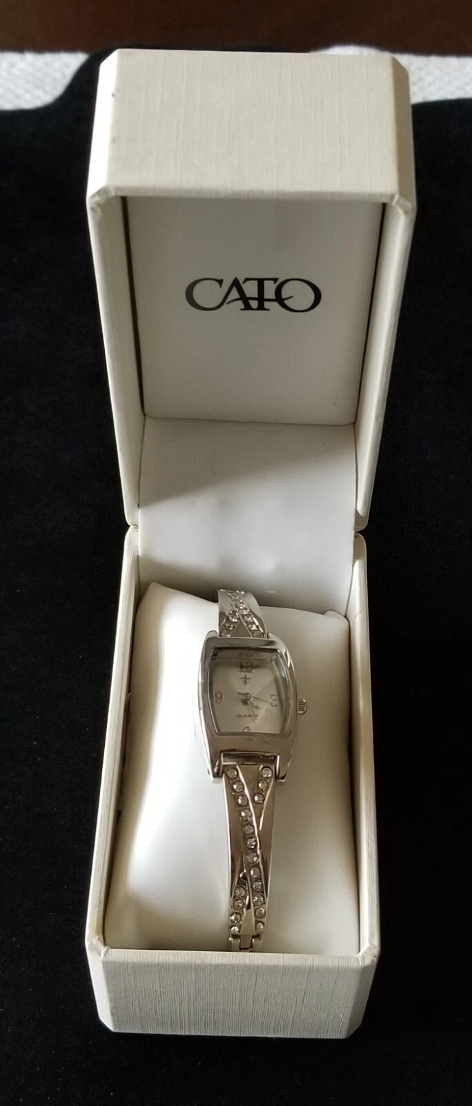 Cato Silver Tone Cuff Watch w/Crystals Partial Link Band 7.5" Max New Battery