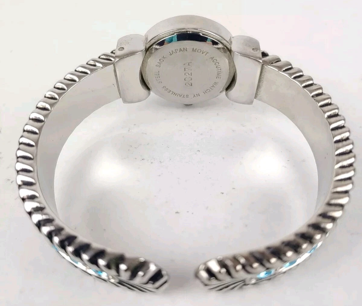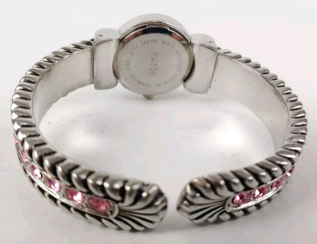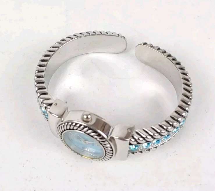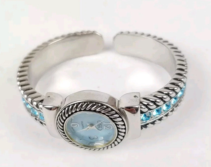 Pair of Cato Cuff Bracelet Watches MOP Faces Rhinestone Bands Silver Tone