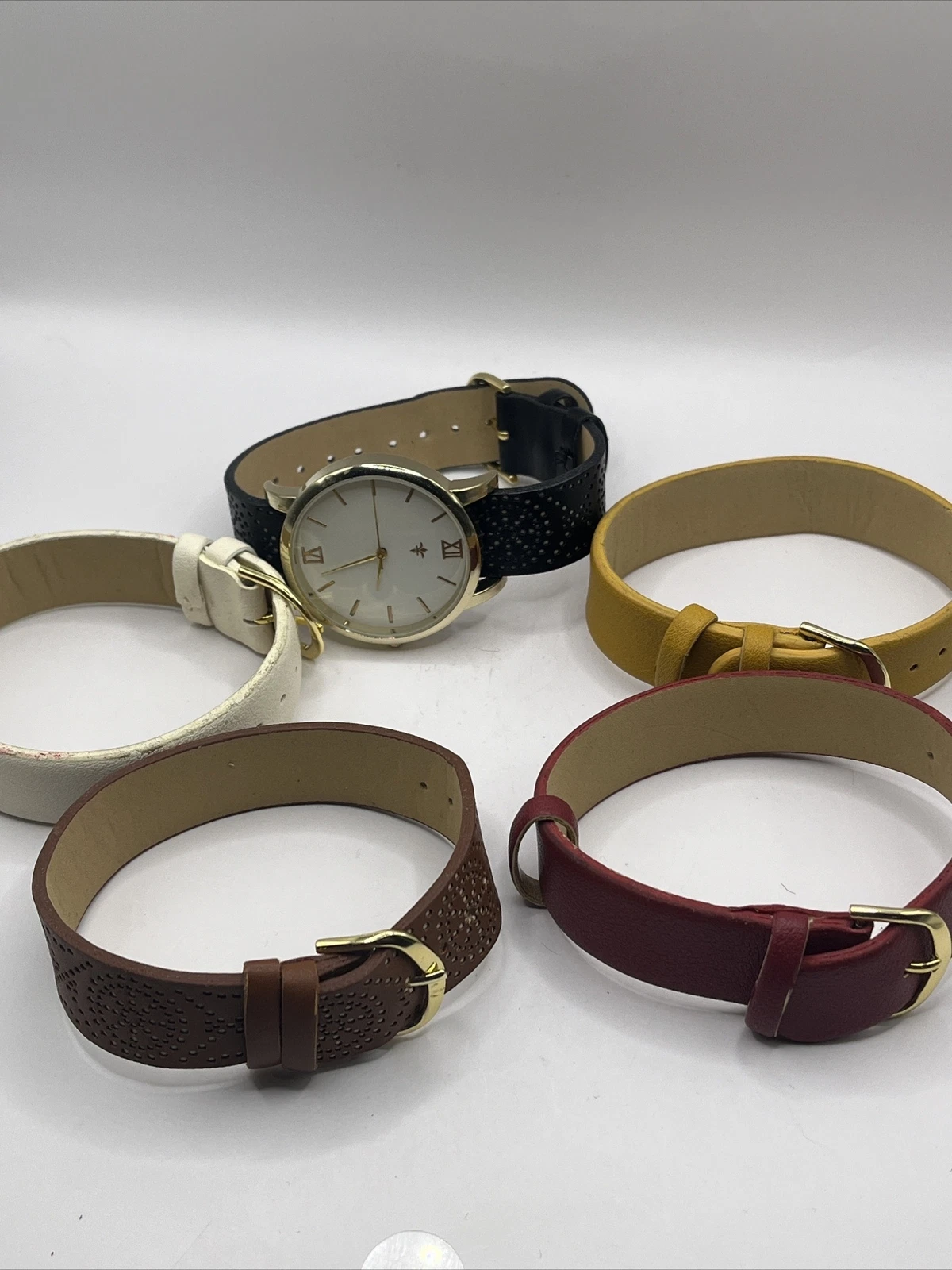 Cato Women's Quartz Watch with 5 Interchangeable Bands Gold Case- New Battery