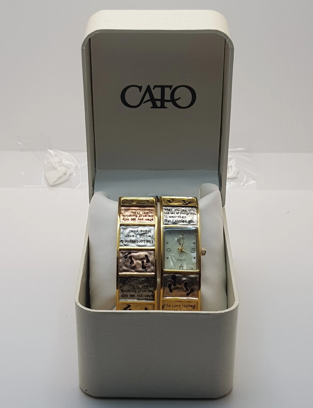 Vintage CATO Quartz Watch Cream Dial Stainless Steel Gold Band...NEW BATTERY