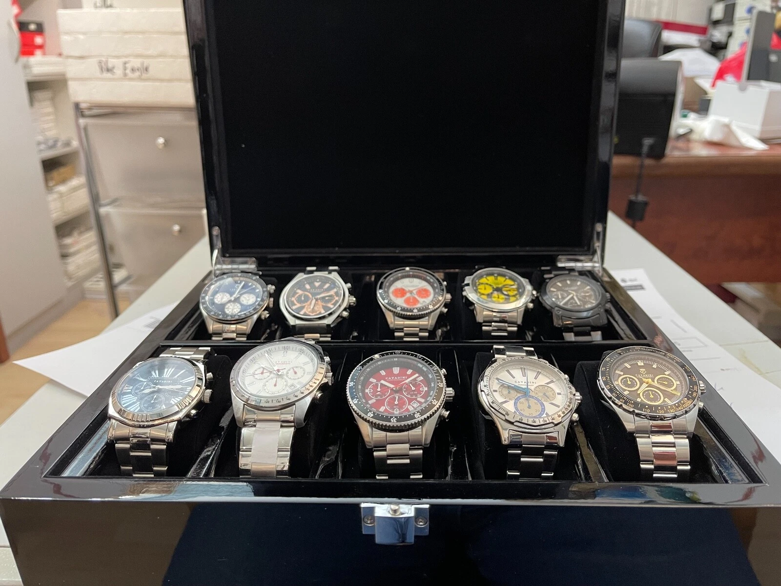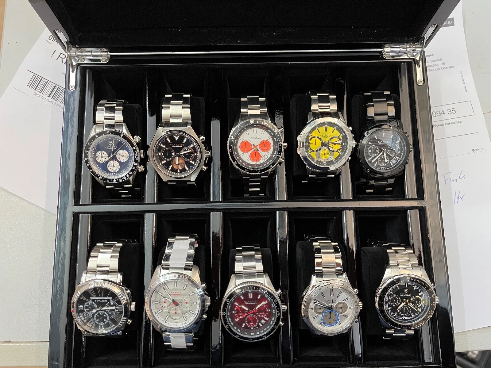 Set of 10 Cavadini men's watches chronographs designer stainless steel 10 bar