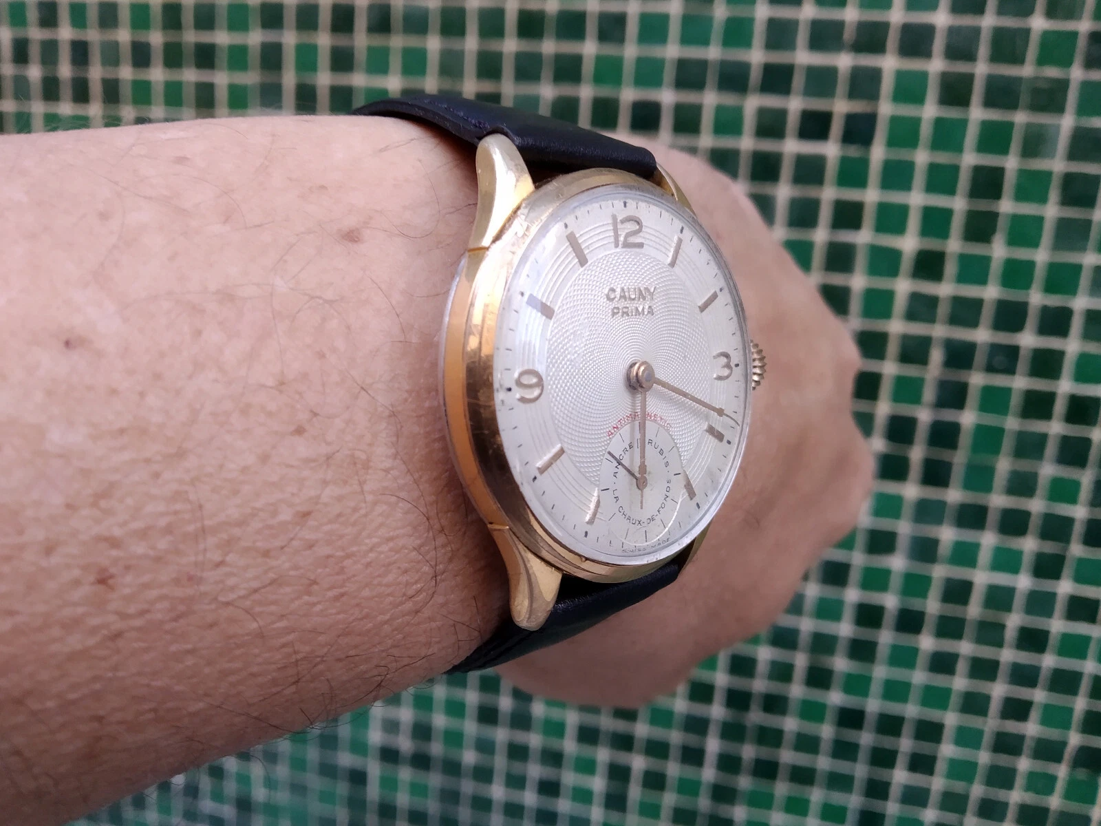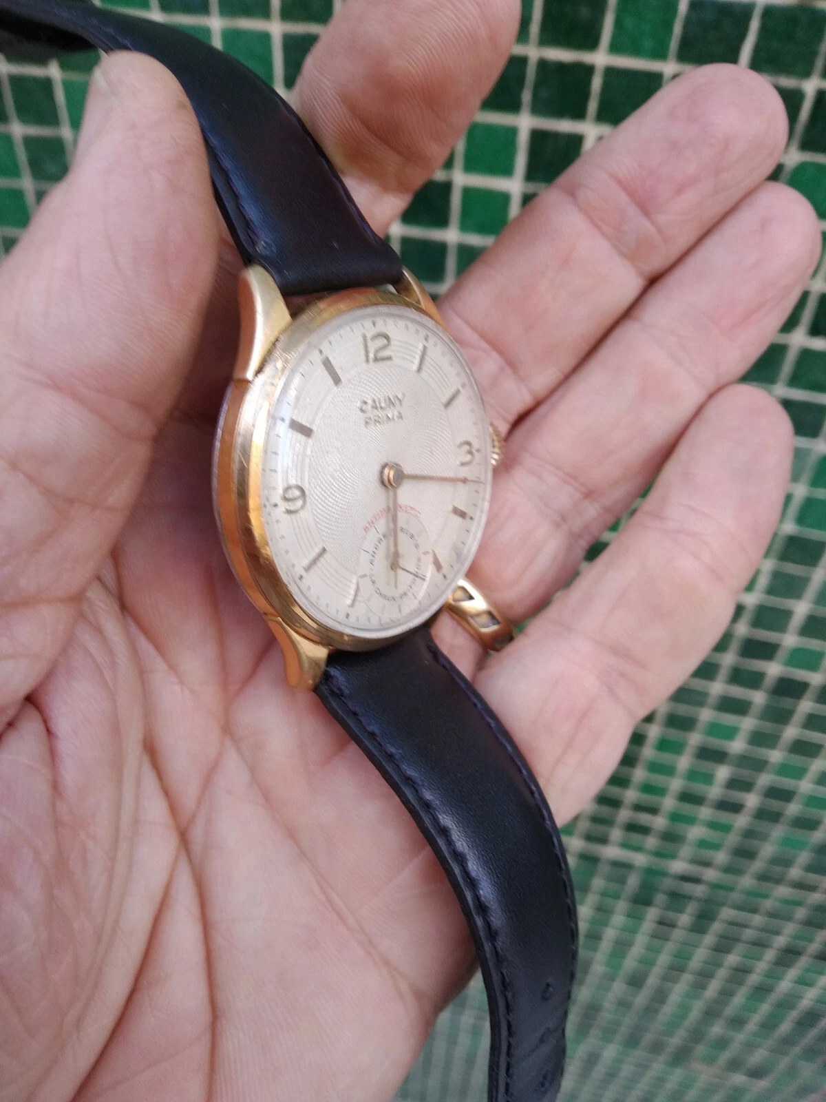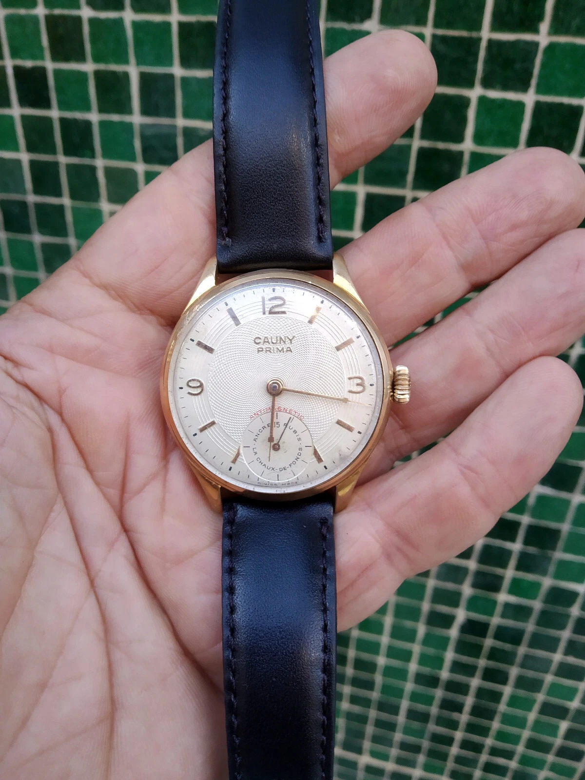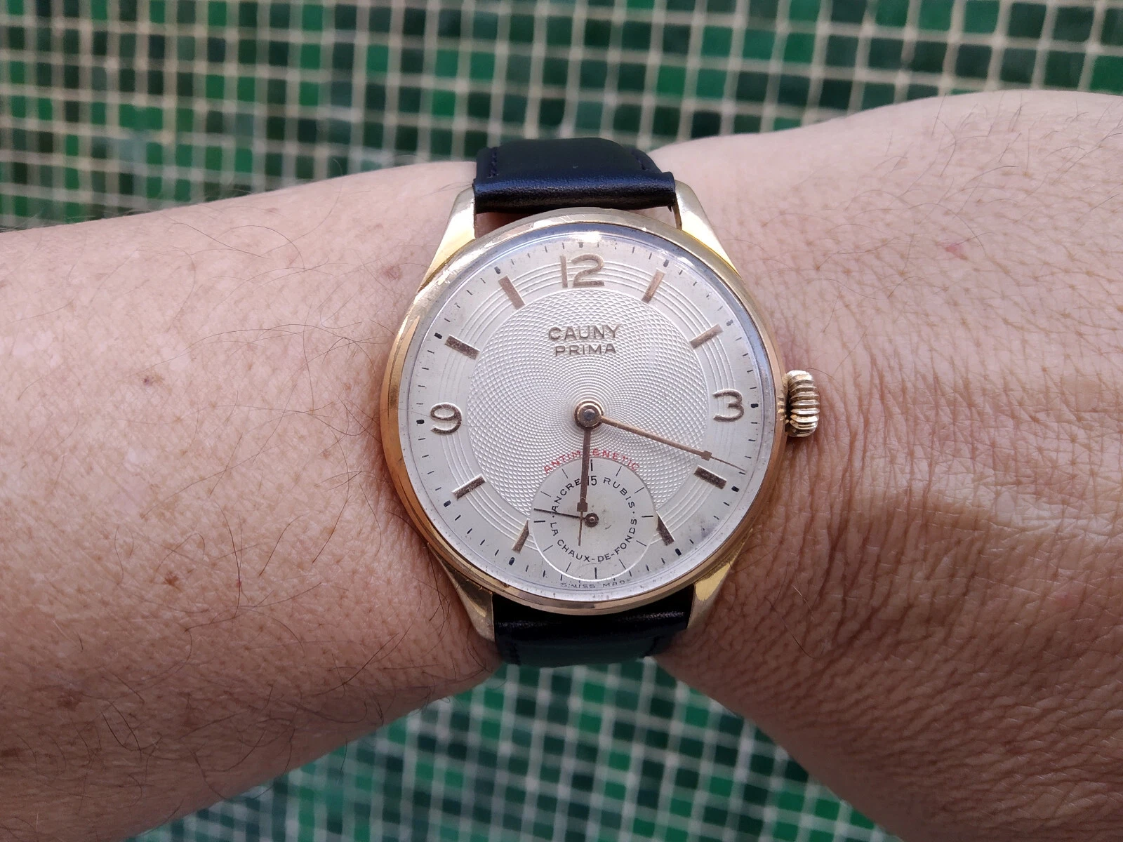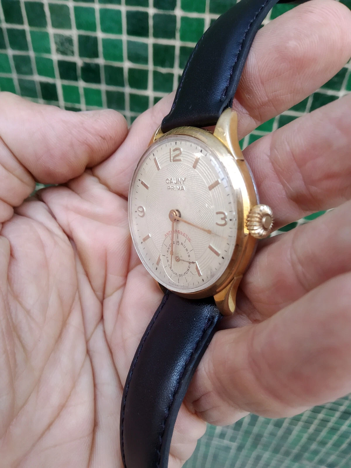 CAUNY PRIMA UNITAS 498 GOLD PLATED 41MM WORKING SUPER BIG GIANT JUMBO