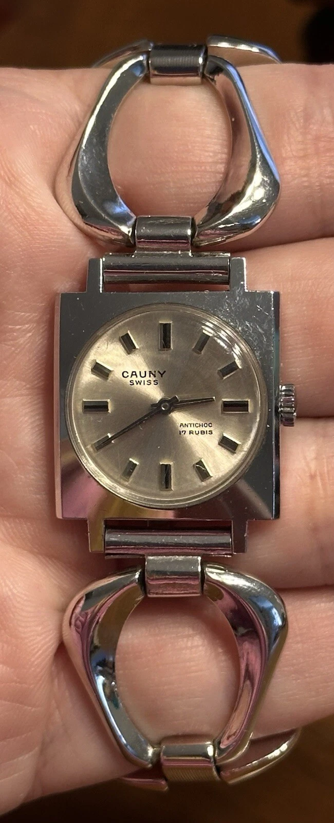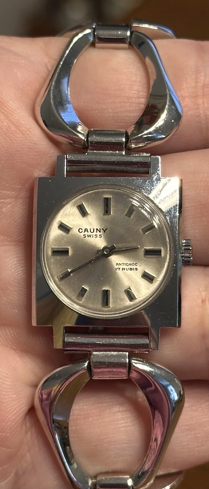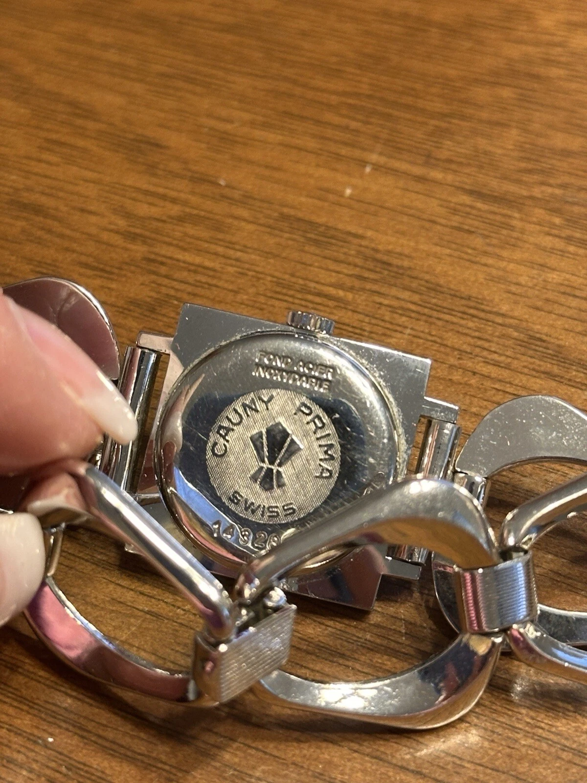 CAUNY SWISS PRIMA VINTAGE WRIST WATCH SILVER TONE PARTS/REPAIR