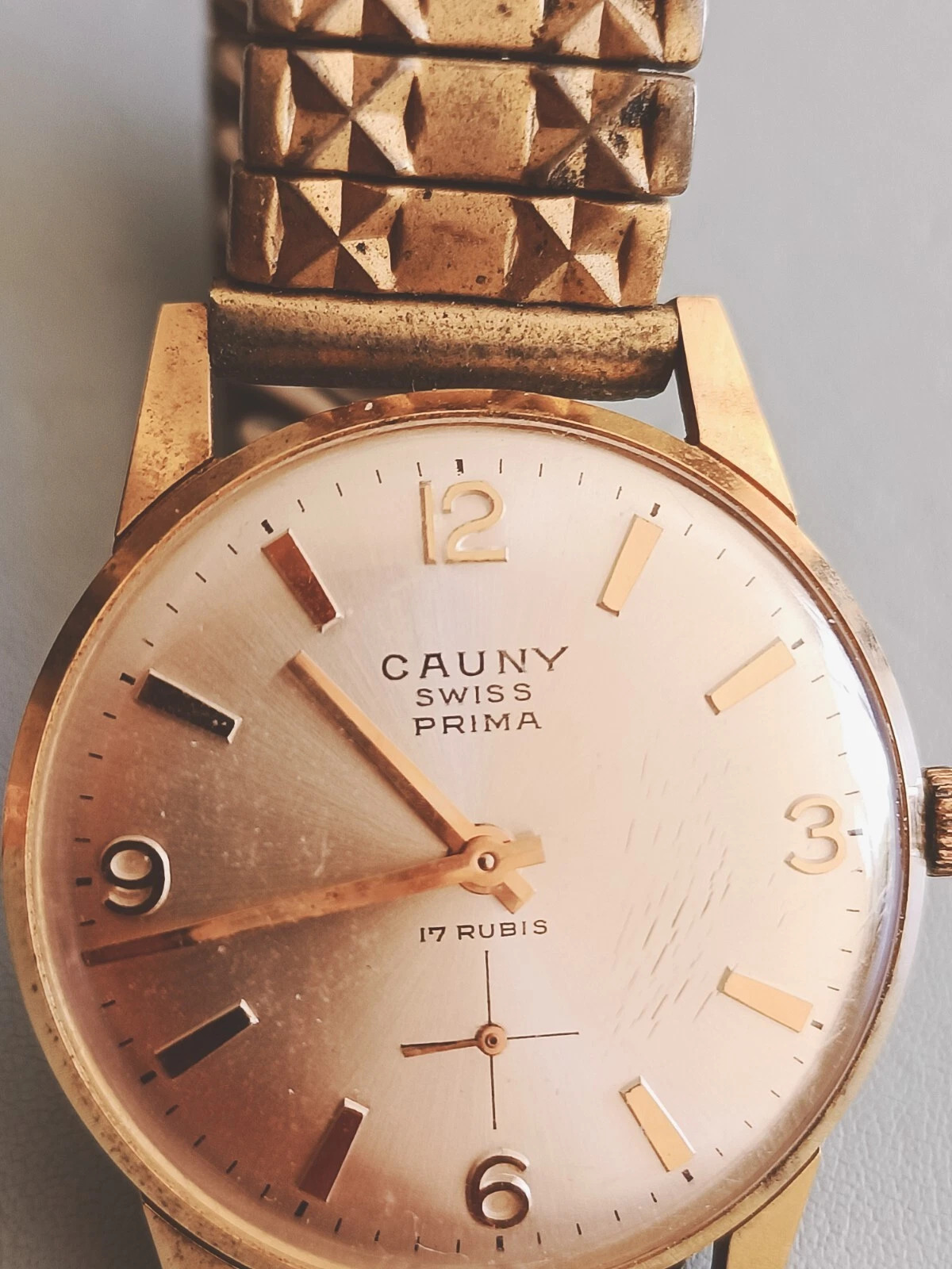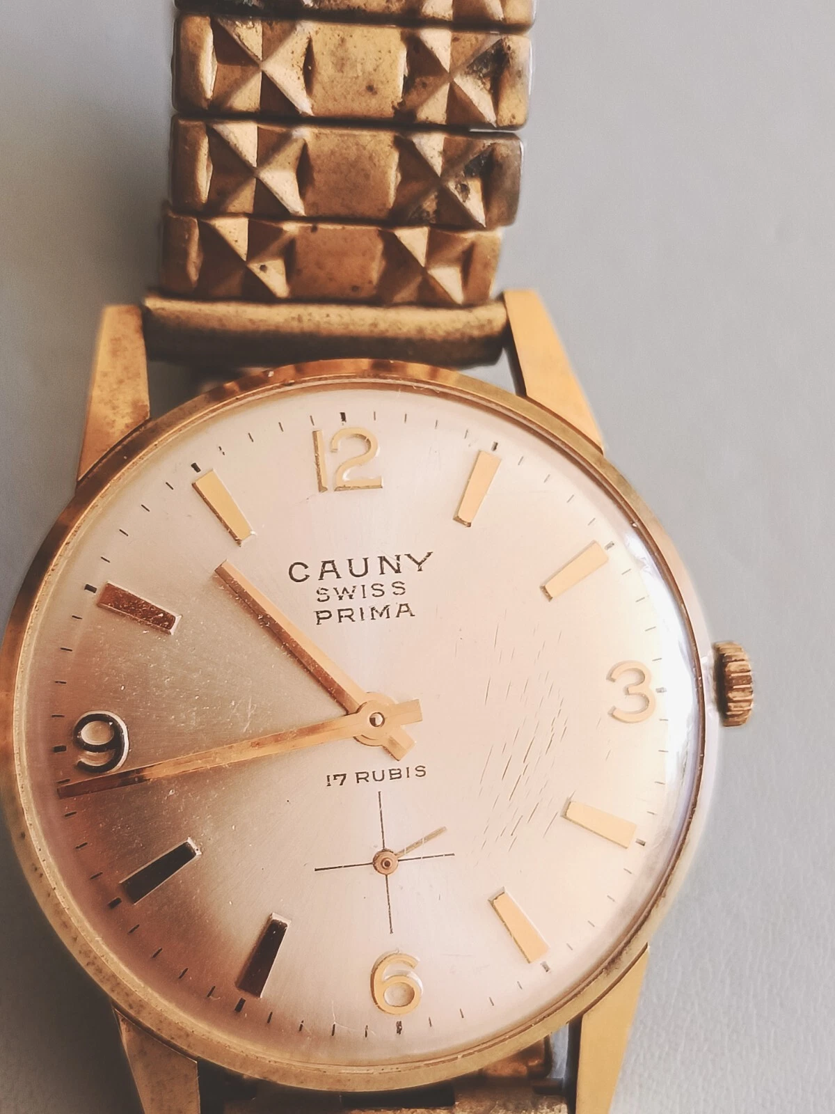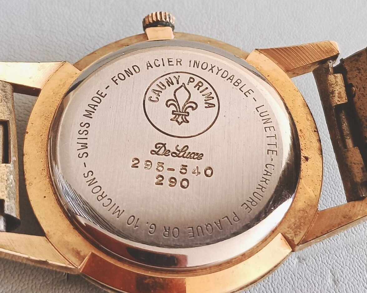 Cauny Prima de Luxe Duo 17 Rubis Jewels Manual Wind Gents Wrist Watch Working