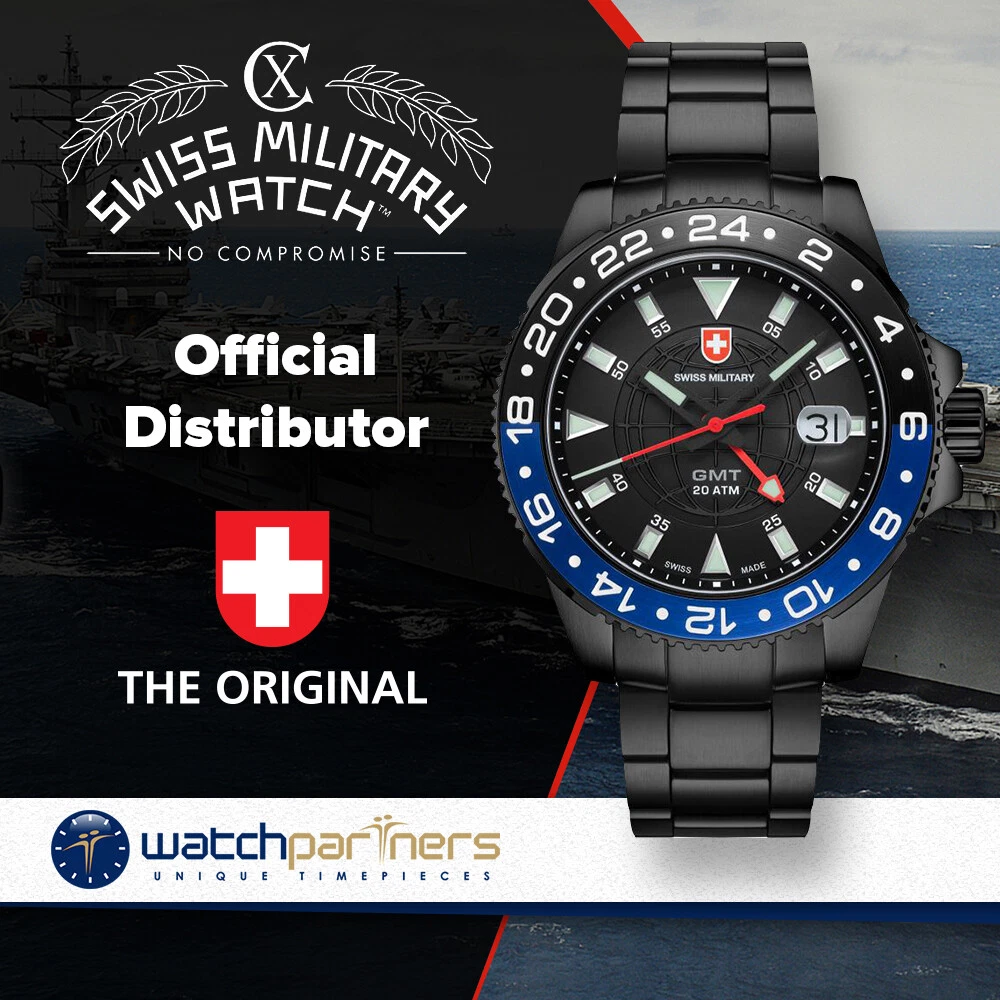 CX Swiss Military GMT NERO Swiss 42mm watch PVD Case 2nd Timezone Blk dial 2776