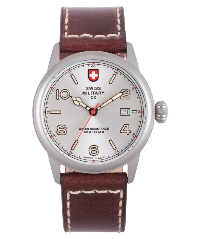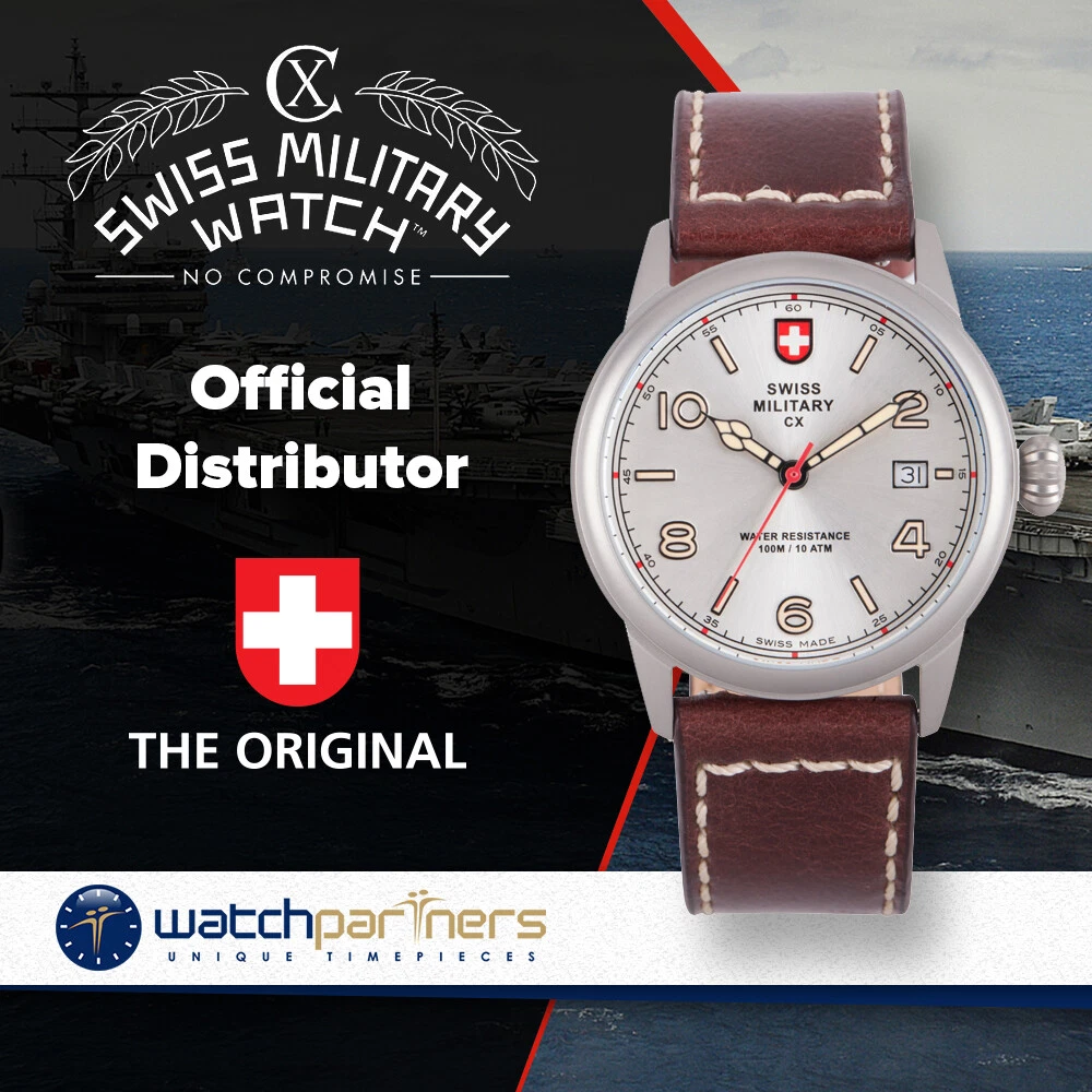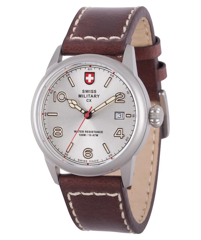 CX Swiss Military SPITFIRE Vintage Watch Swiss Quartz Date 10ATM Silv Dial 2870