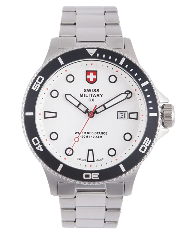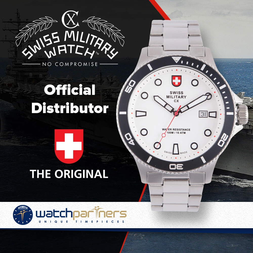 CX Swiss Military CALYPSO Diving Watch Swiss Quartz Date 10ATM White Dial 2875