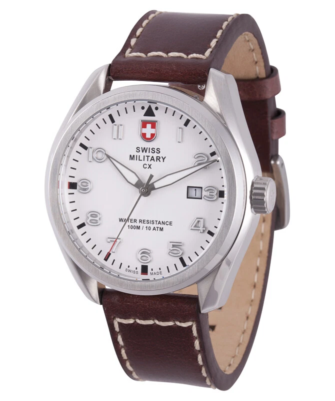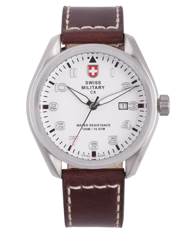 CX Swiss Military MIRAGE Pilot Watch Swiss Quartz Date 10ATM White Dial 2855