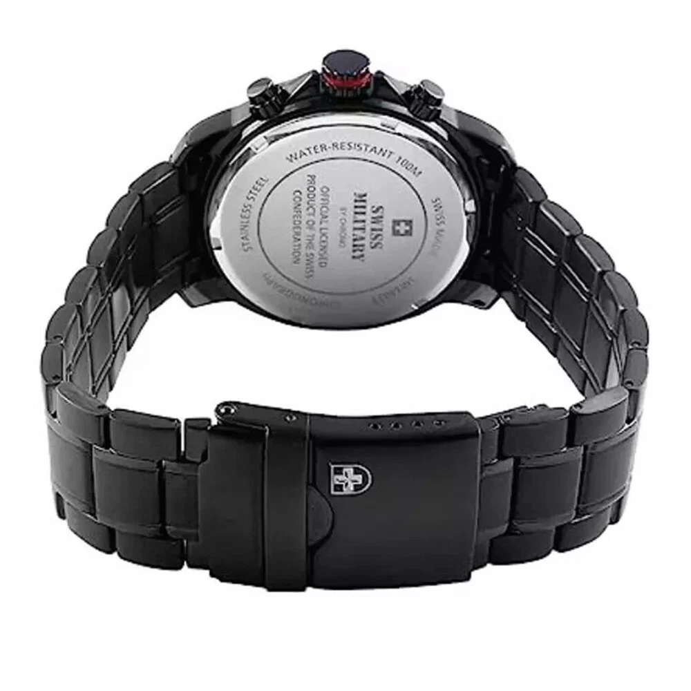 SWISS MILITARY SM34033.03 Army-Style Black Leather Strap Chronograph Watch