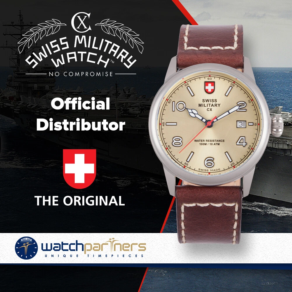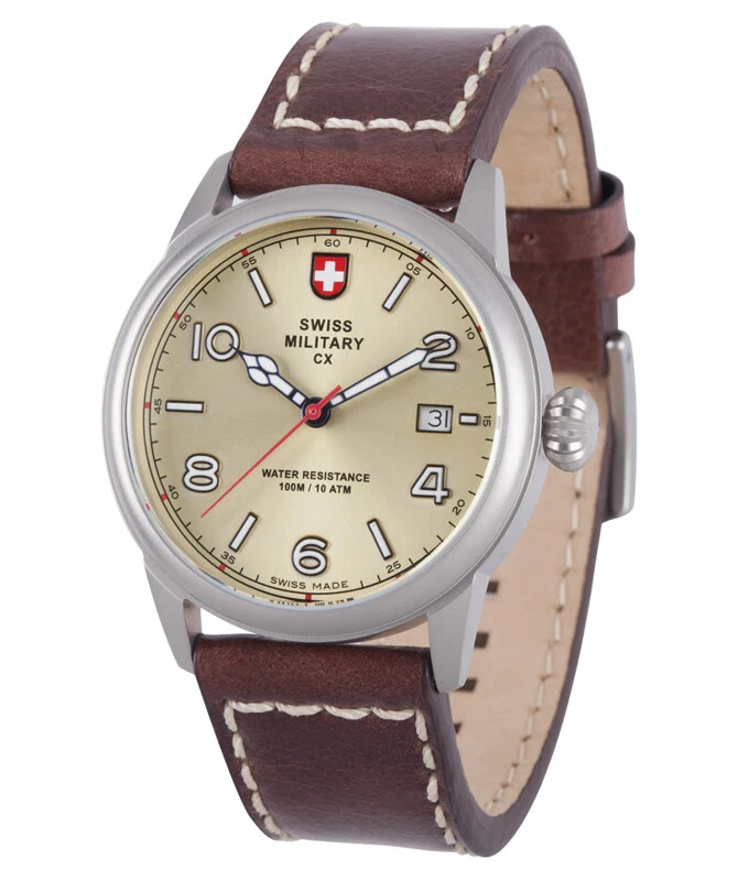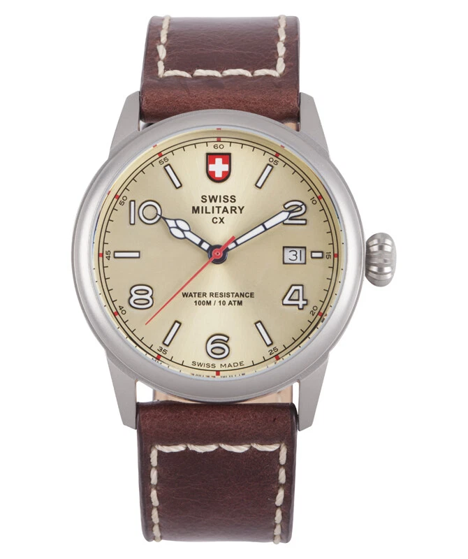 CX Swiss Military SPITFIRE Vintage Watch Swiss Quartz Date Champagne Dial 2871