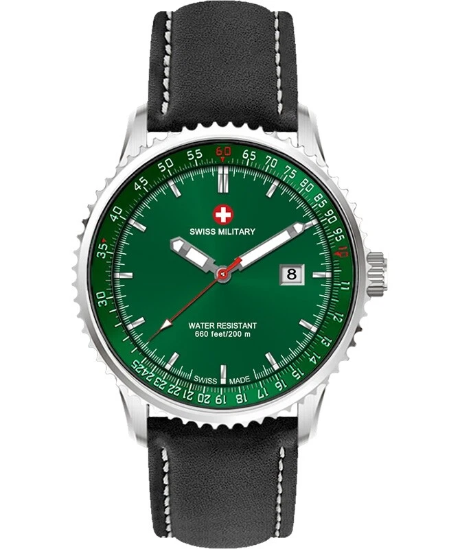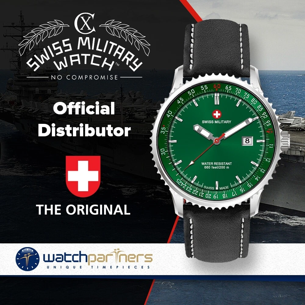 CX Swiss Military Lightning Rawhide Swiss Watch 44mm Case 20ATM Green Dial 31191
