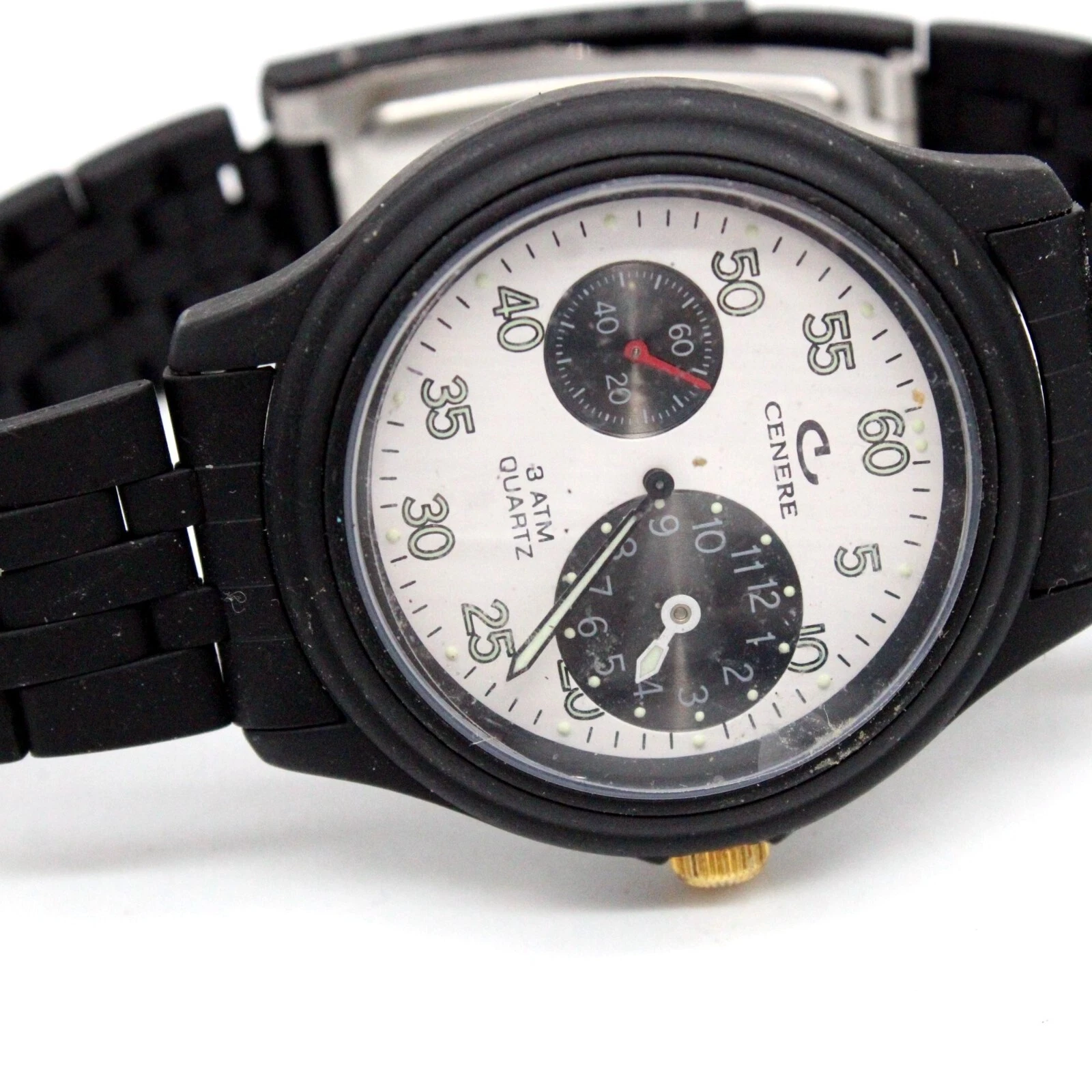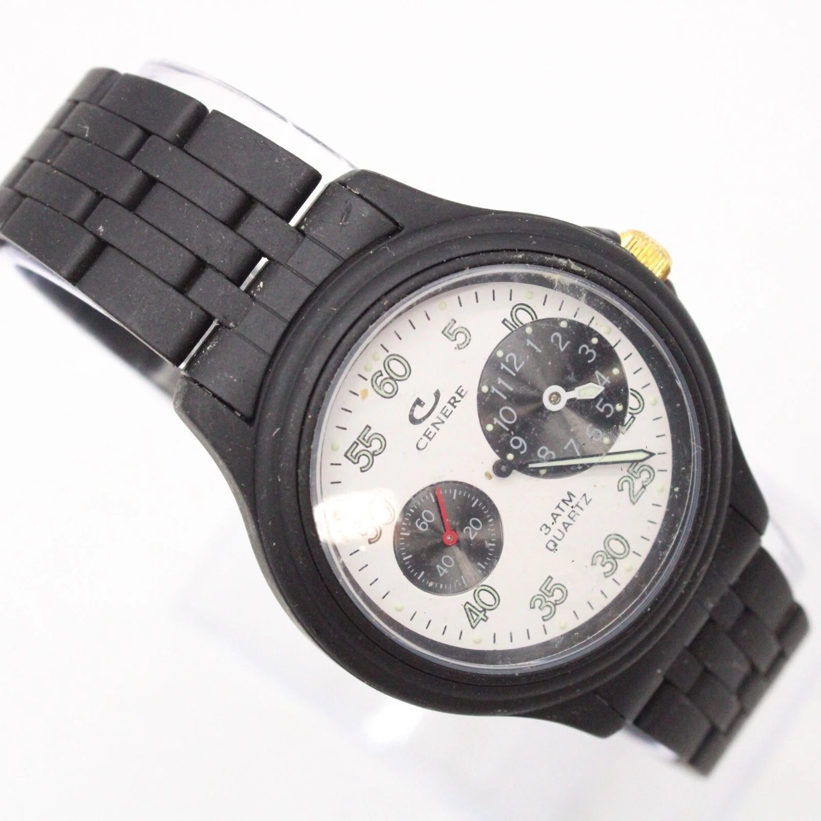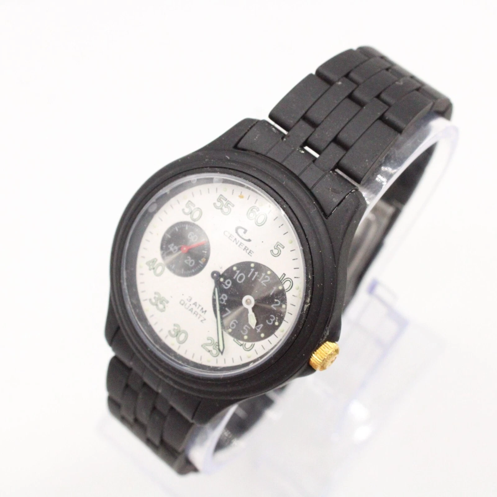 CENERE Chronograph Watch Mens Black Tone Stainless Steel Classic White Dial 3ATM