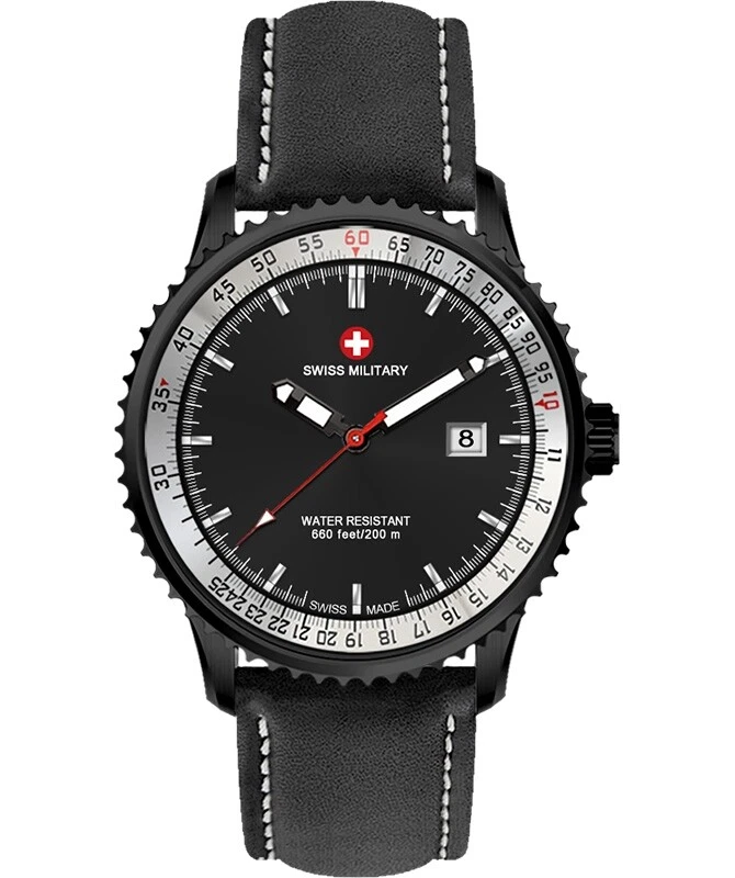CX Swiss Military Lightning Nero Rawhide Swiss Watch 44mm 20ATM Blk Dial 3121