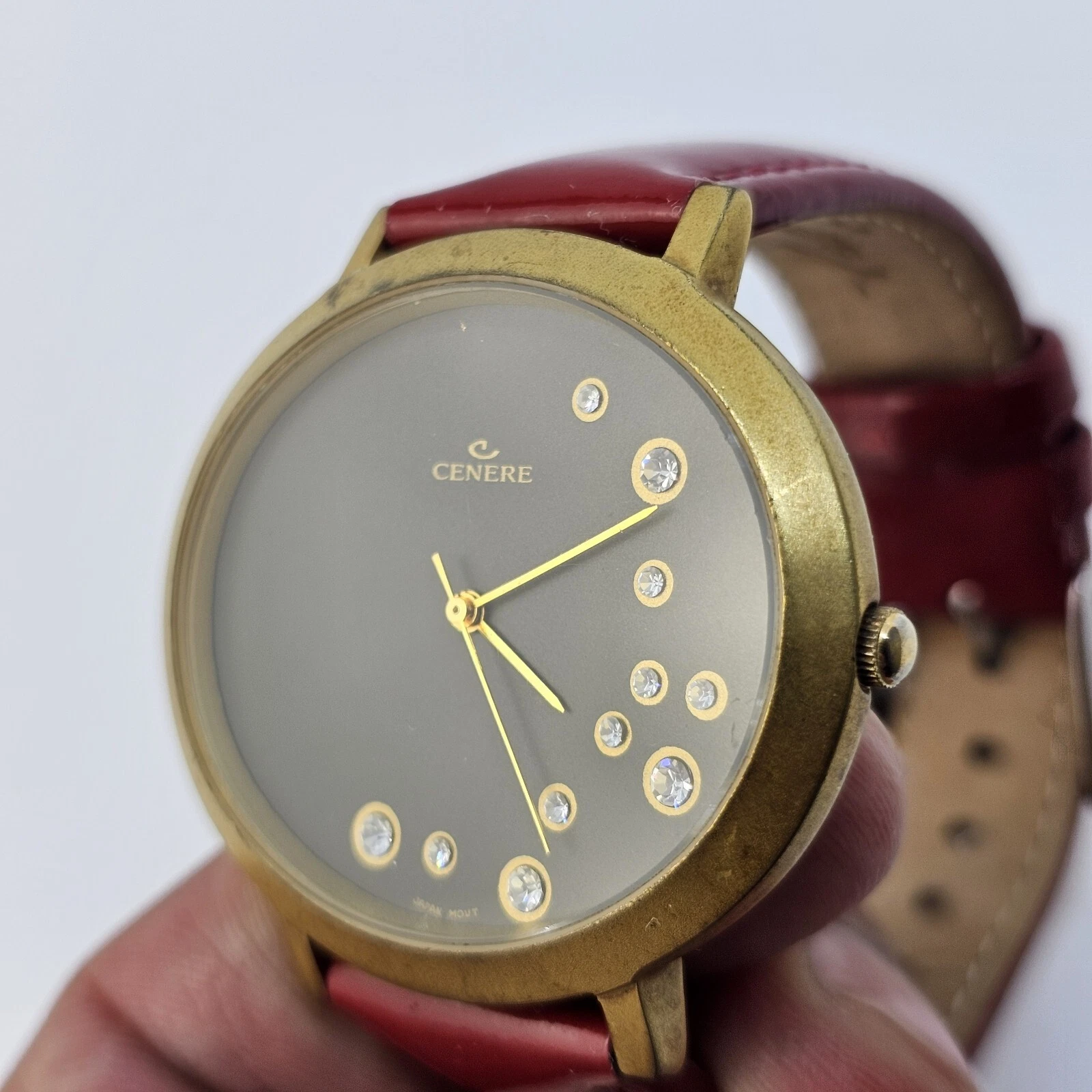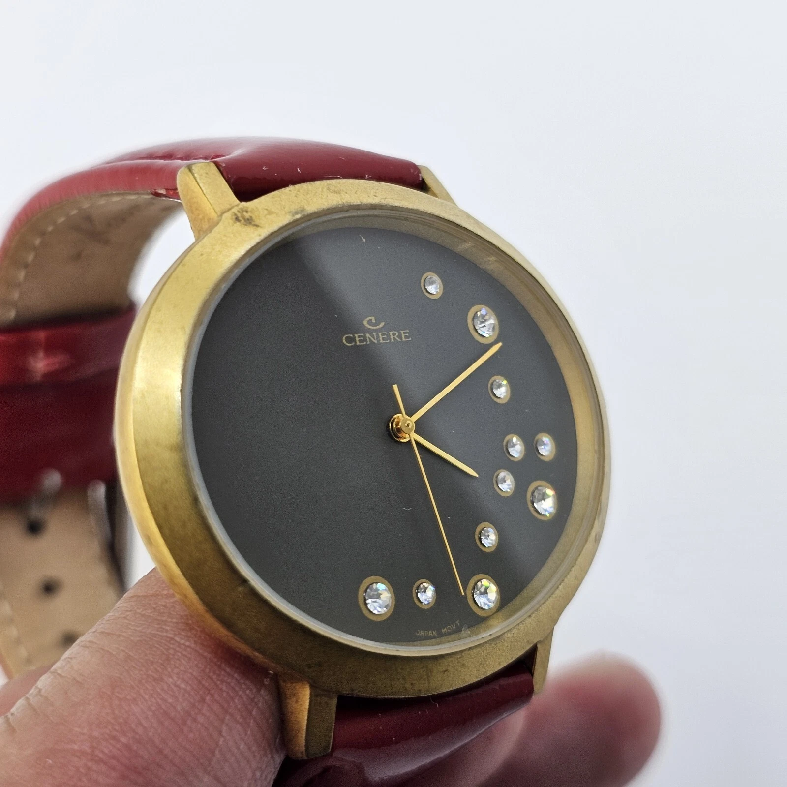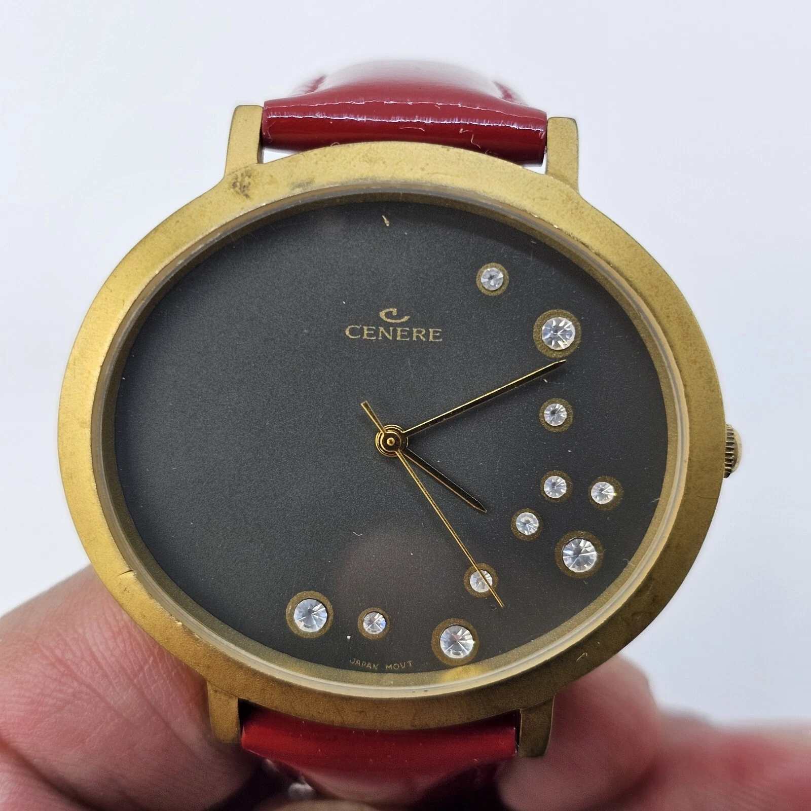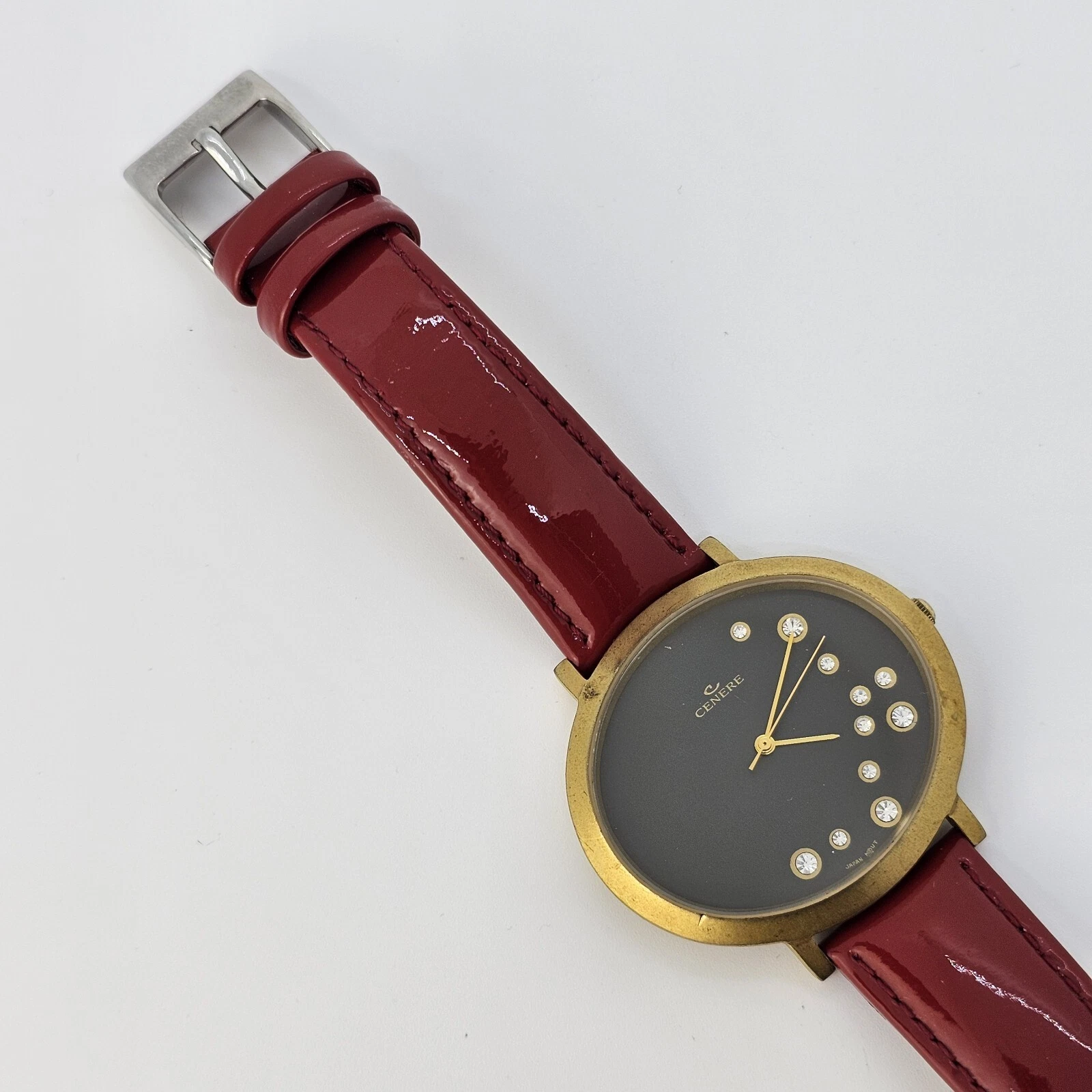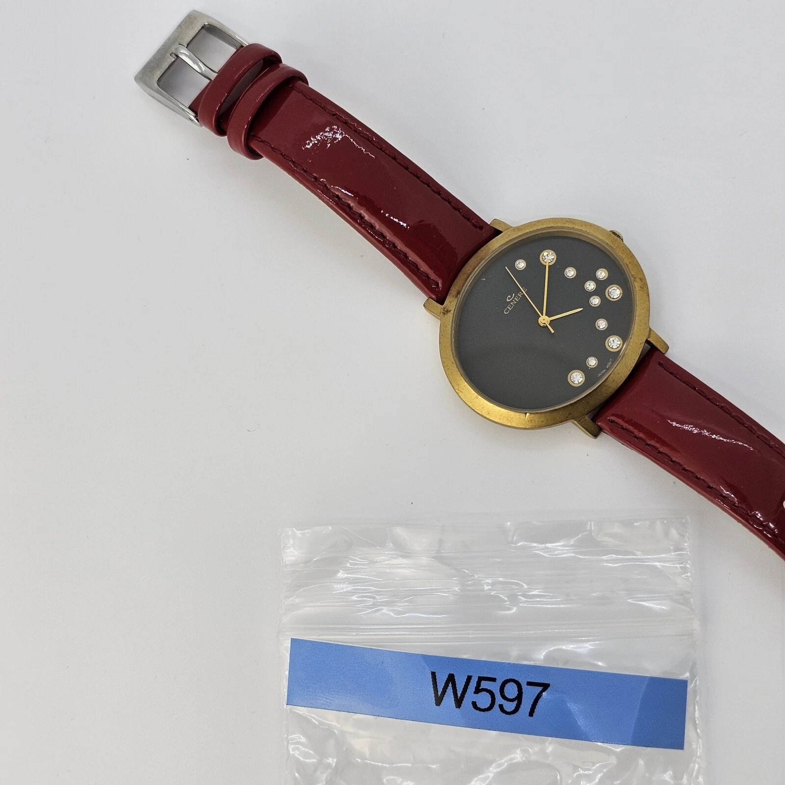 VTG Cenere Watch Women's Gold Case Black Dial Red Bands Up to 6.75" New Battery