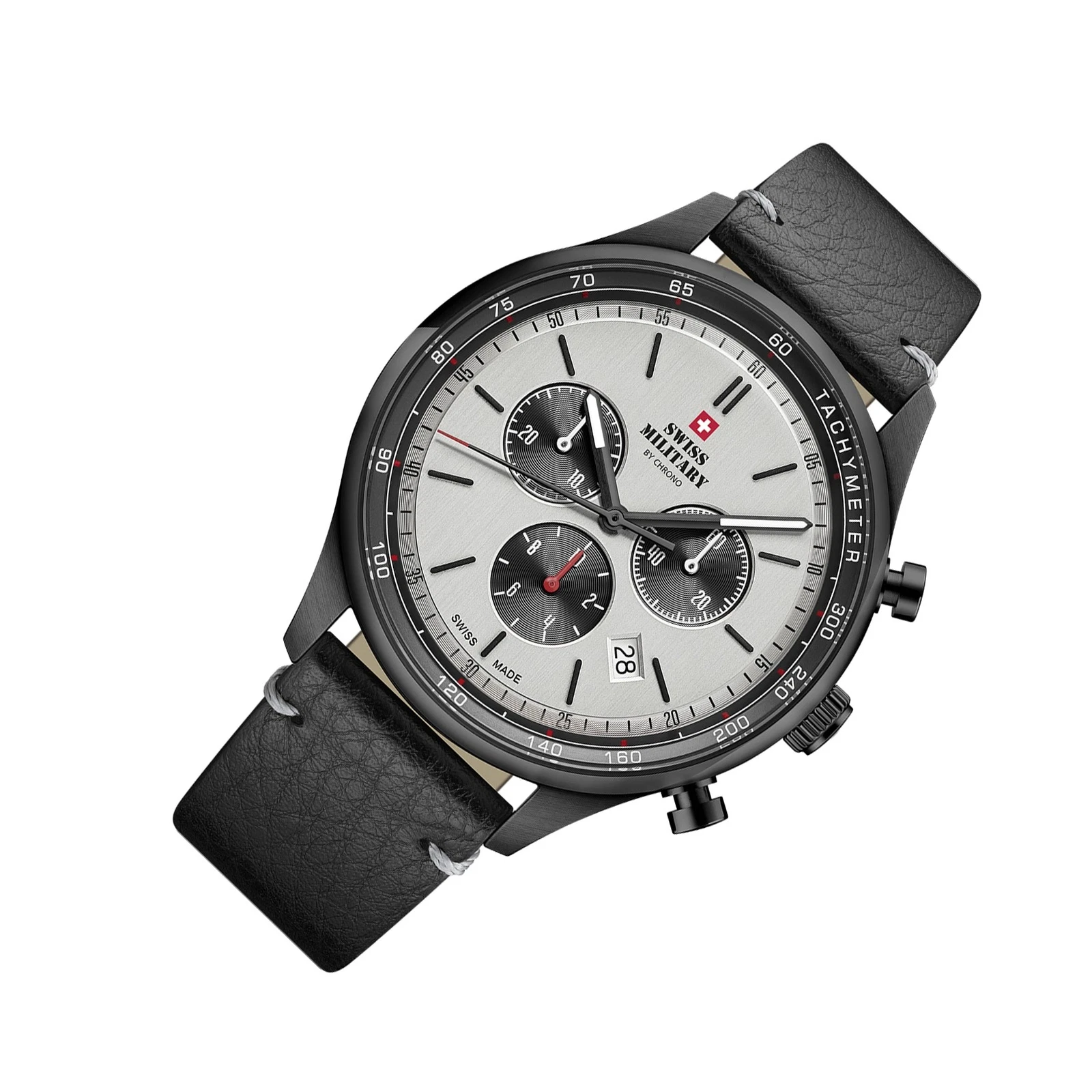 SWISS MILITARY SM34081.11 Swiss Made Chronograph Leather Strap Men's Watch