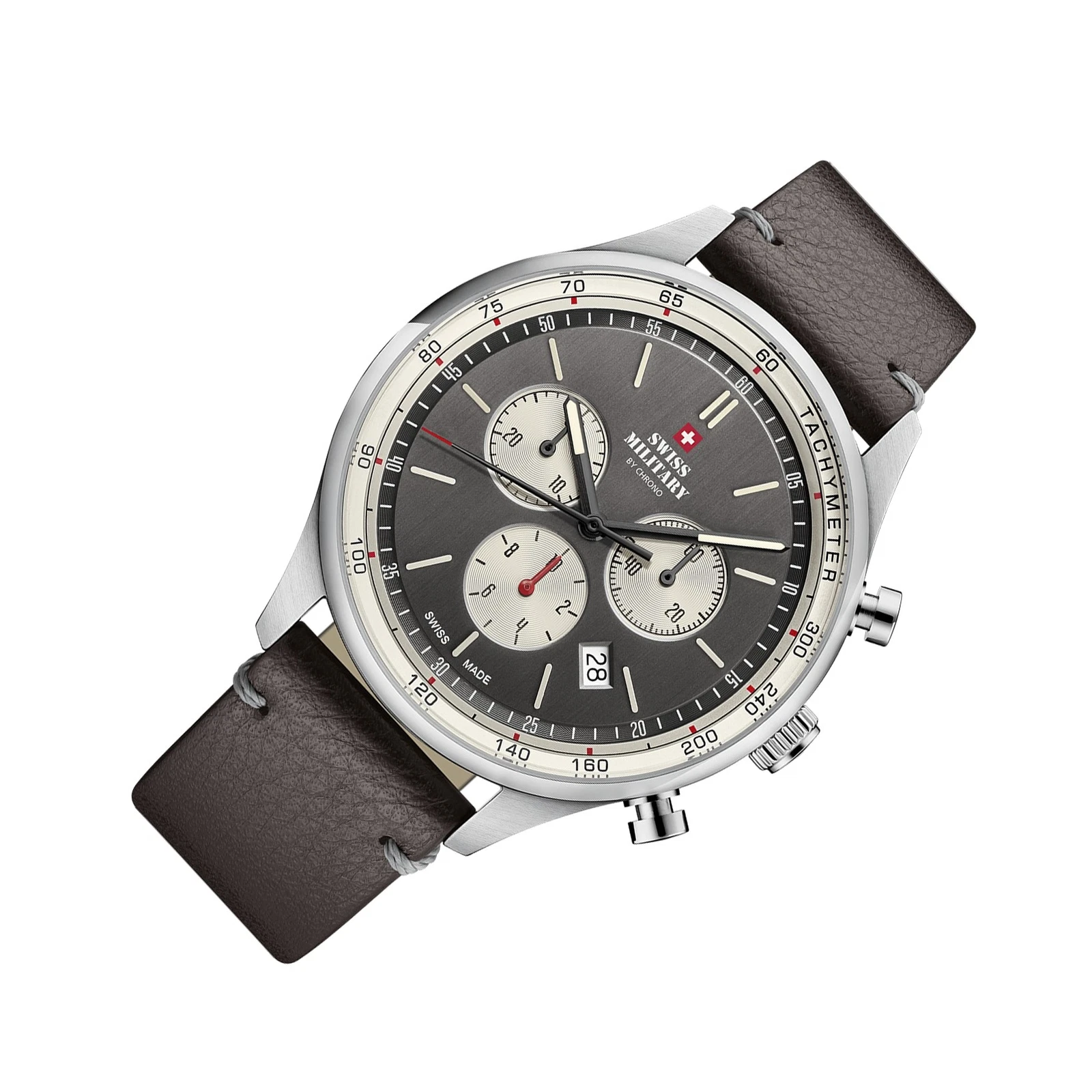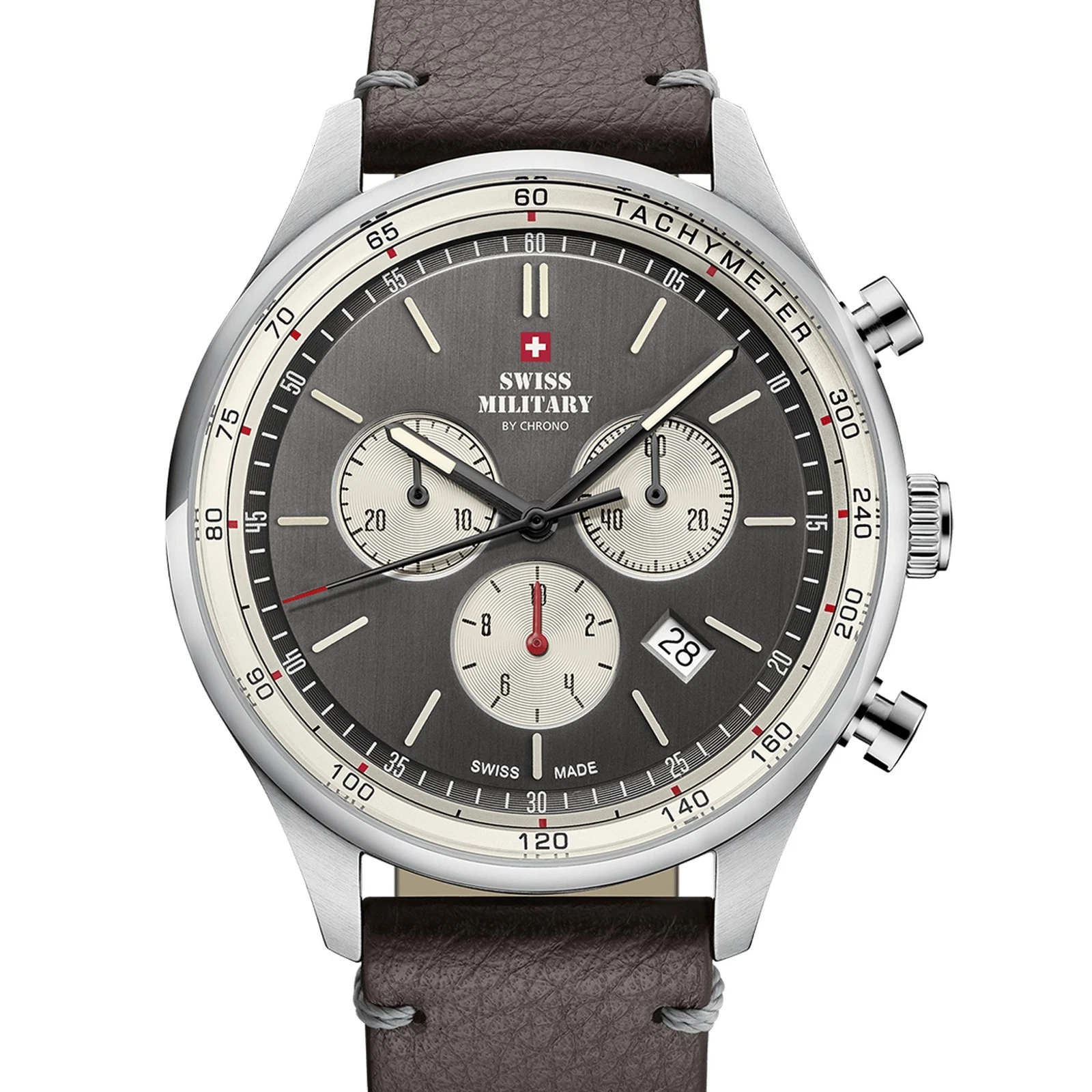SWISS MILITARY SM34081.12 Swiss Made Chronograph Leather Strap Men's Watch