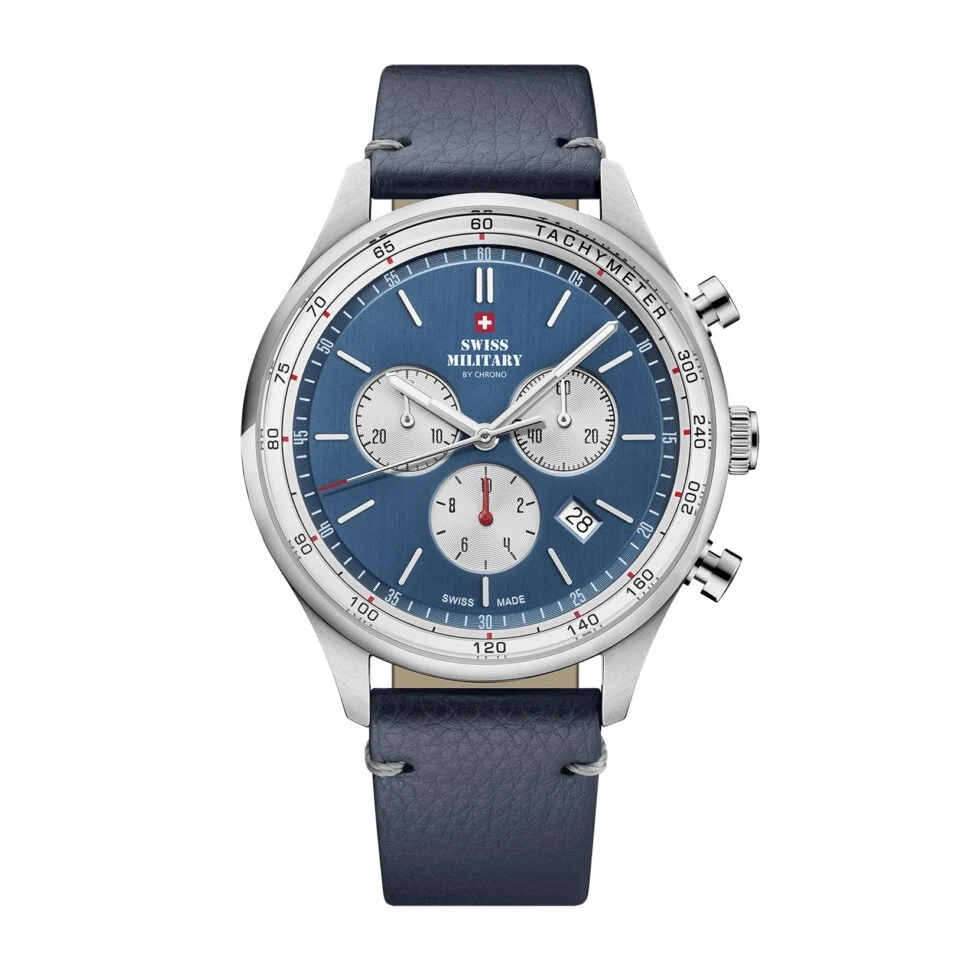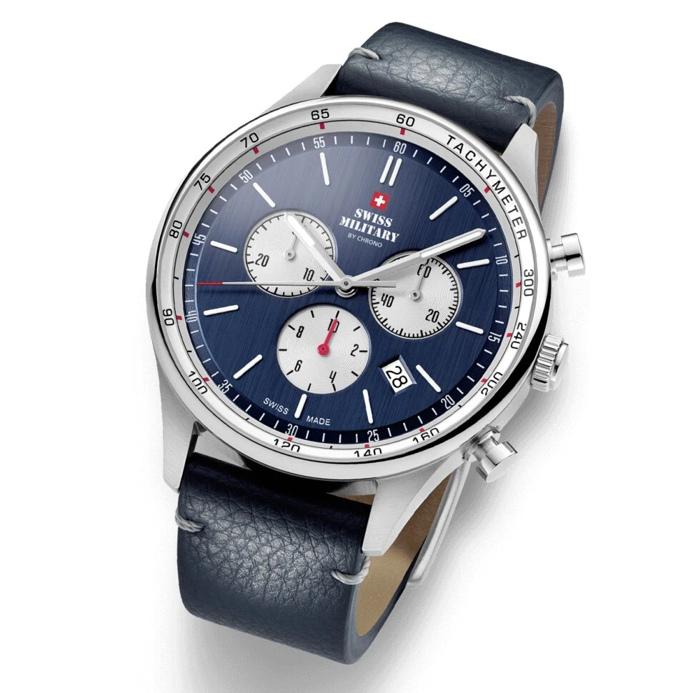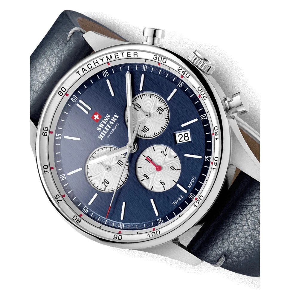 SWISS MILITARY SM34081.08 Swiss Made Chronograph Blue Leather Strap Men's Watch