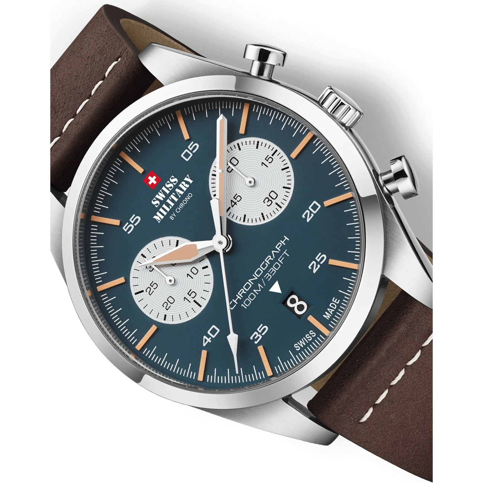 SWISS MILITARY SM34090.04 Vintage Chronograph Leather Strap Men's Watch