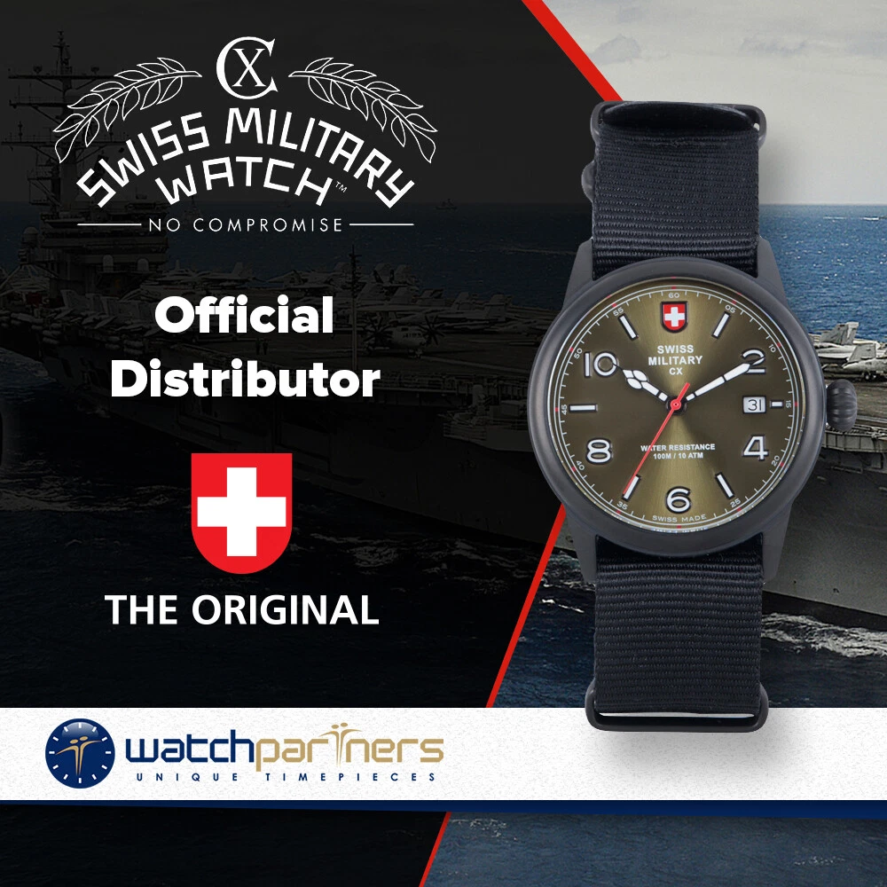 CX Swiss Military SPITFIRE Vintage Watch Swiss Quartz Date 10ATM Green Dial 2869