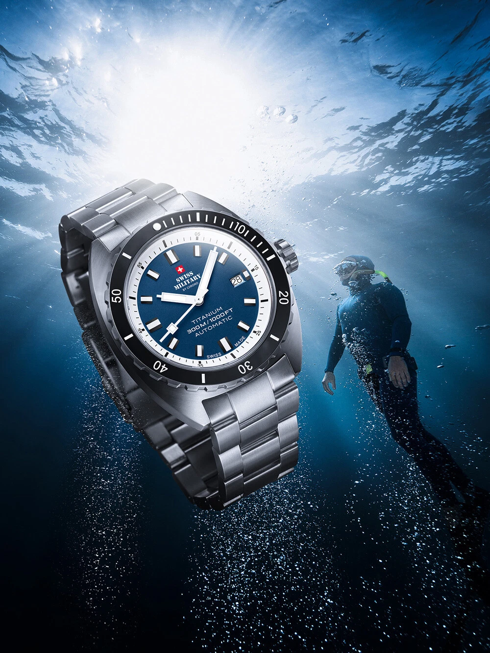 Swiss Military SMA34100.03 Diver Titanium Automatic Mens Watch 42mm 30ATM