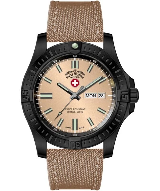 CX Swiss Military DESERT STORM Day/Date watch 42mm Khaki strap Khaki dial 3099