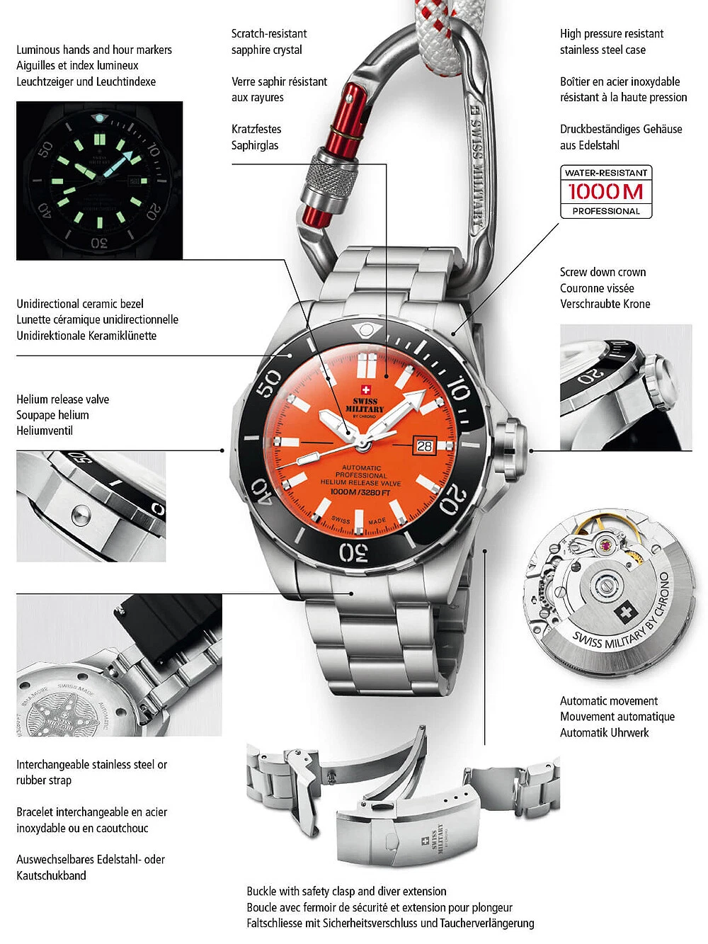 Swiss Military SMA34092.07 Automatic Diver Mens Watch 45mm 100ATM