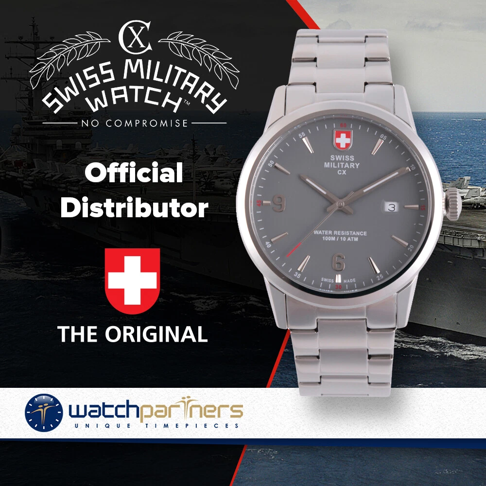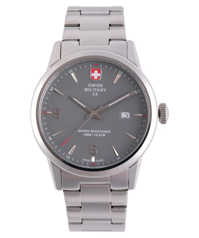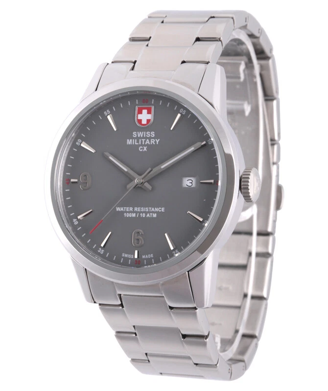 CX Swiss Military GRUNT Officer Watch Swiss Quartz SS Bracelet Grey Dial 2887