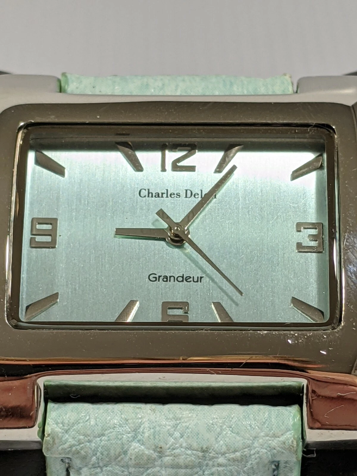 Charles Delon Grandeur Silver Tone Blue Leather Band Watch 9 Inch