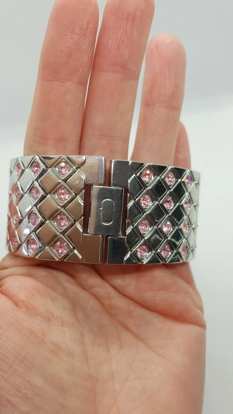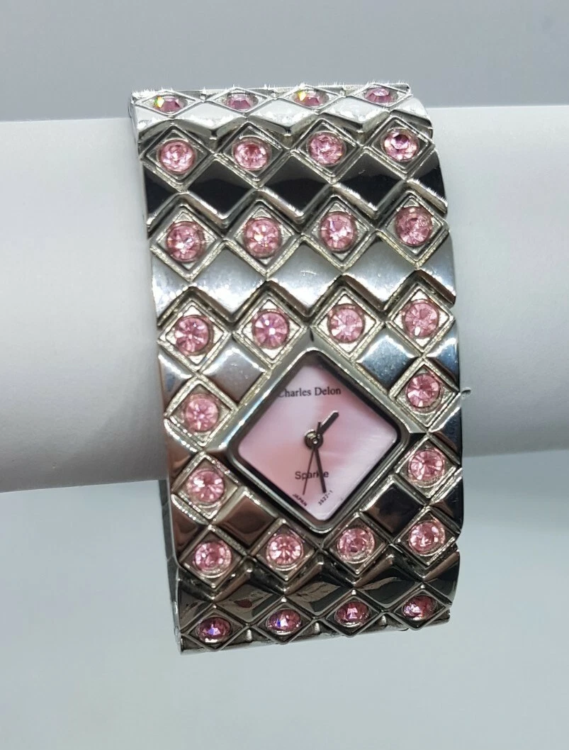 Charles Delon Watch Sparkle Women's Silver tone metal bracelet pink rhinestones