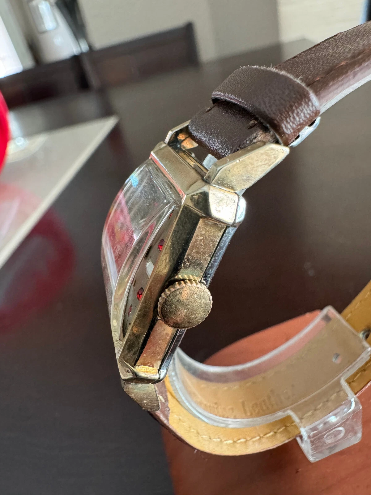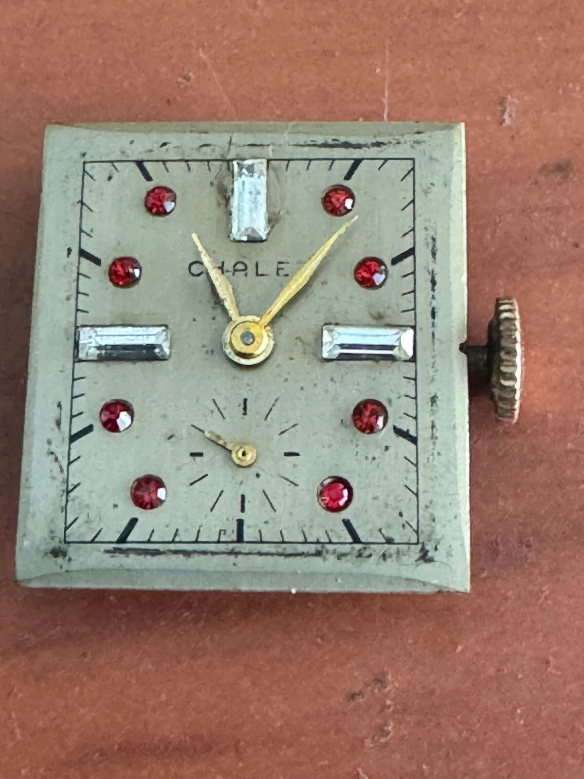 VINTAGE UNISEX CHALET FAUX DIAMOND AND RUBY DIAL WRIST WATCH, KEEPING TIME