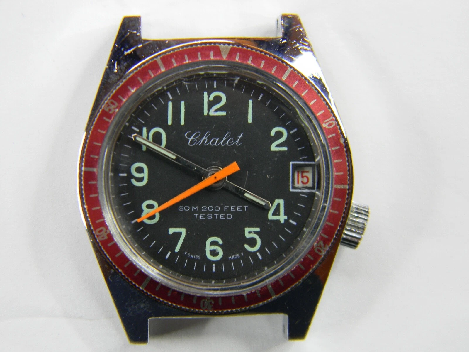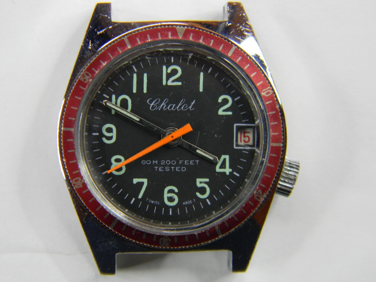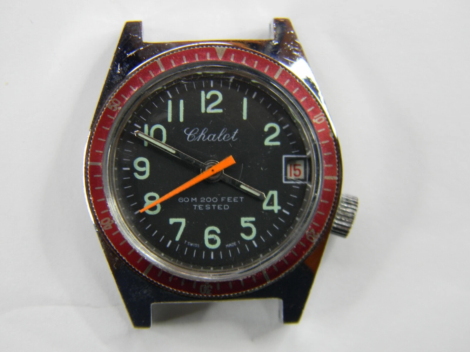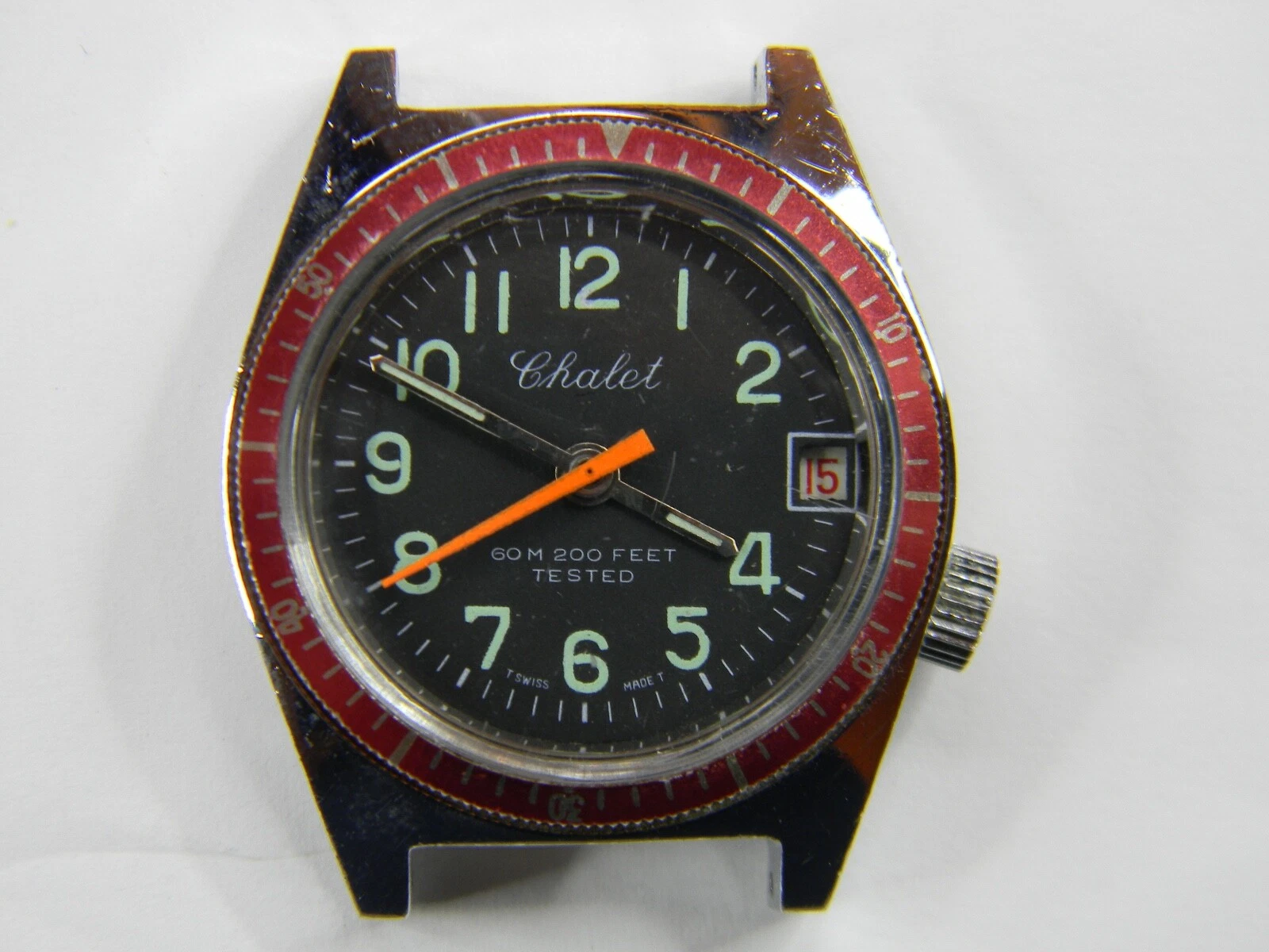 STUNNING VINTAGE SWISS CHALET CAL 8800 60M 200FT DIVER WATCH - FINE CASE -REPAIR