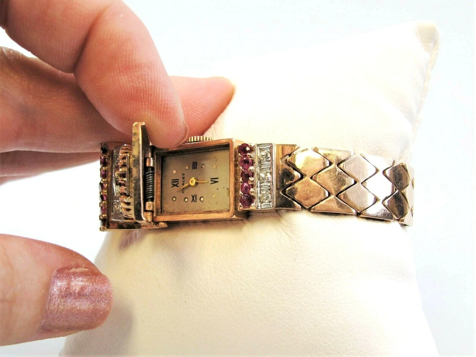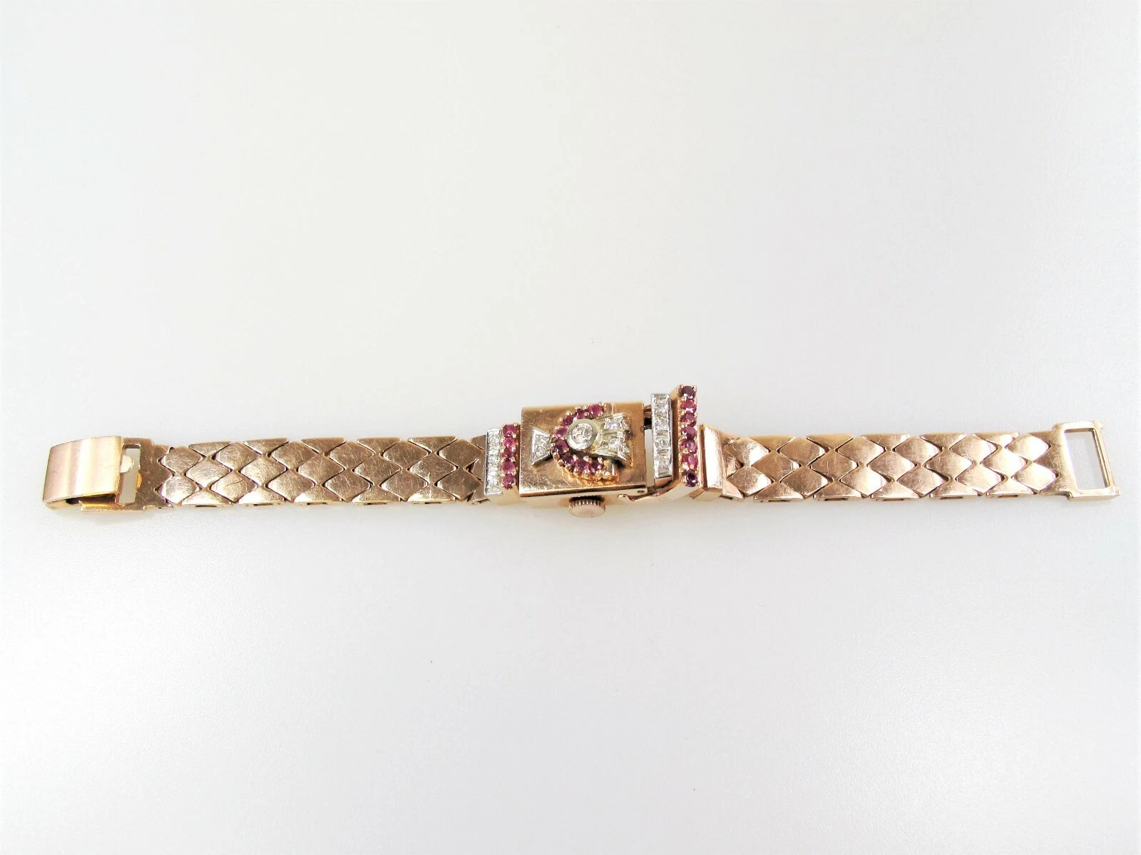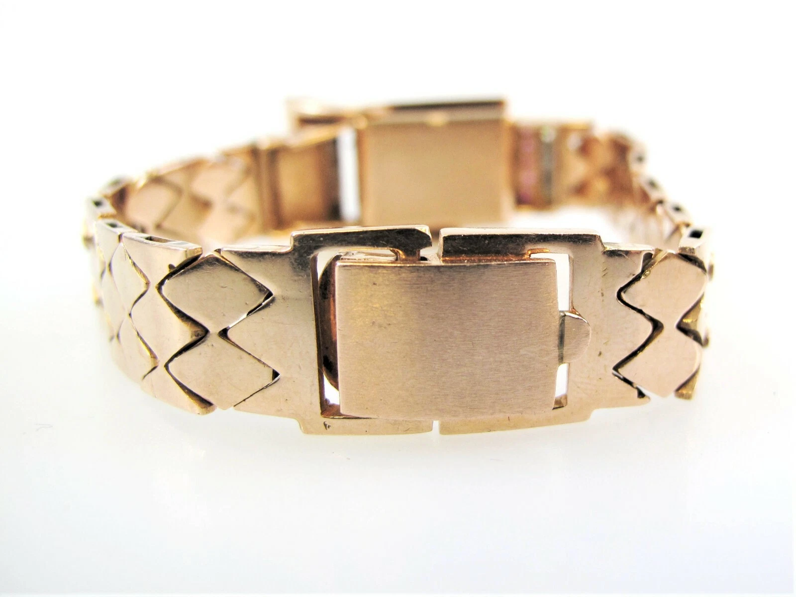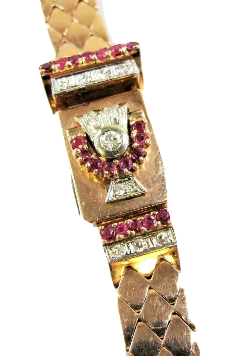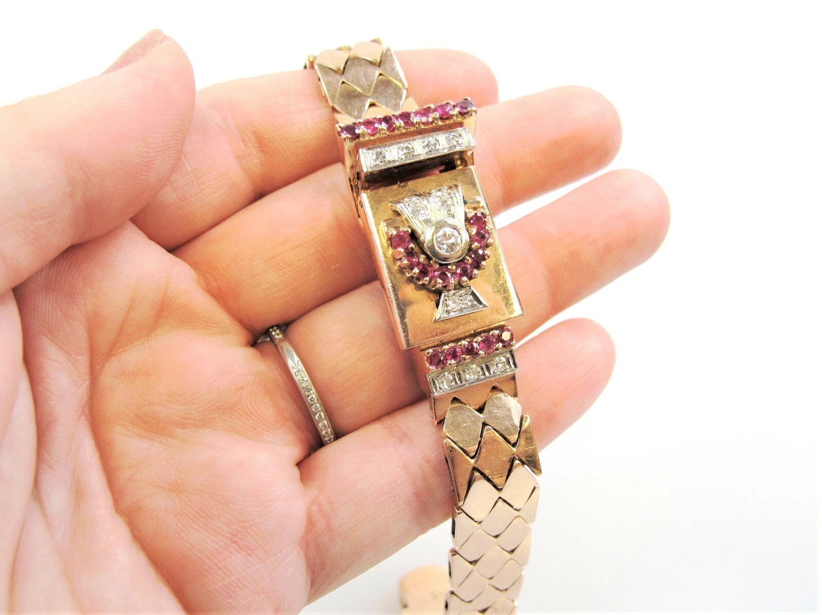 Watch Chalet Ruby & Diamond 1.65 CTW Vintage Bracelet 14K Rose Gold 7" Long