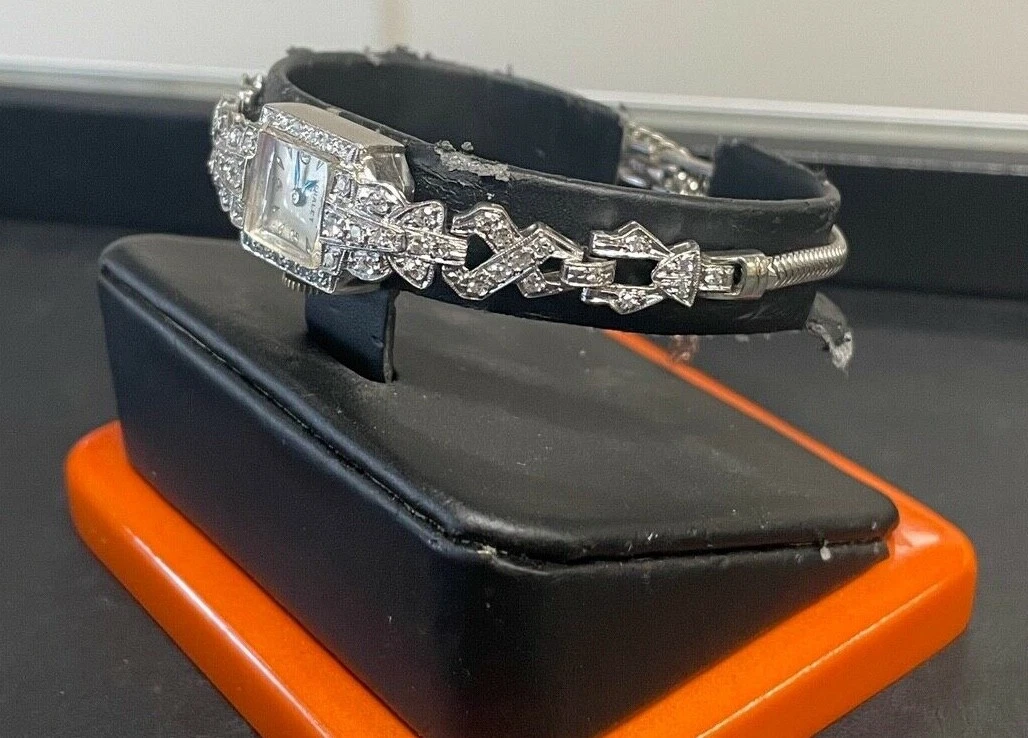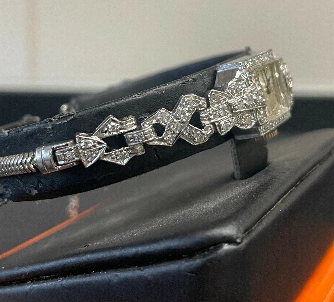 Antique Chalet Platinum, White Gold & 1cttw. Victorian Style Woman's 8in. Watch