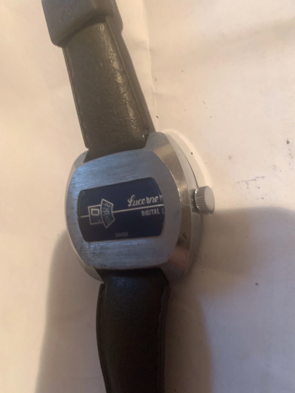 Mint Lucerne 70s Digital Blue & Silver Swiss Direct Read Jump Hour Windup Watch