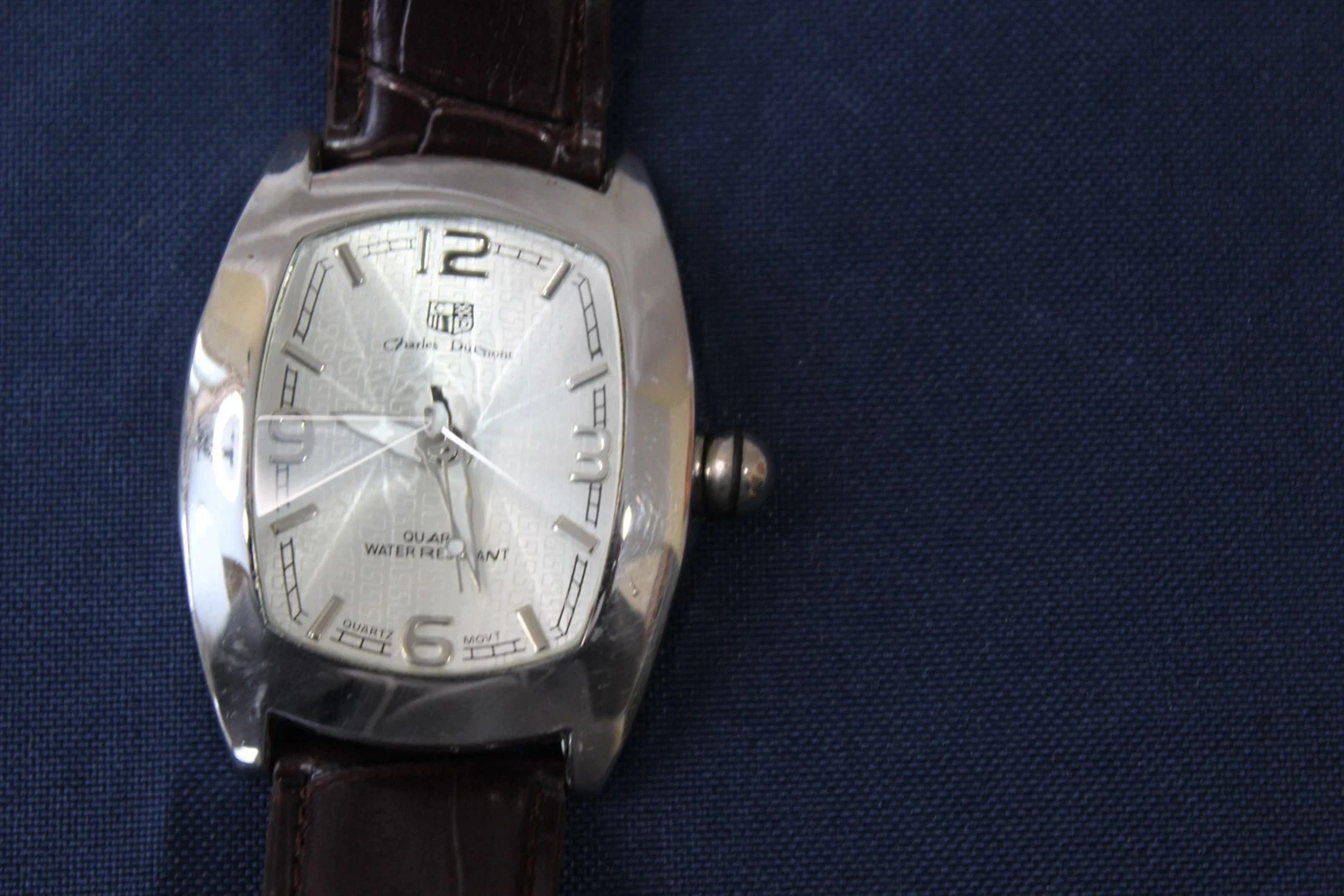 Wristwatch Charles Dumont with Leather Band 2616G Dome Crystal