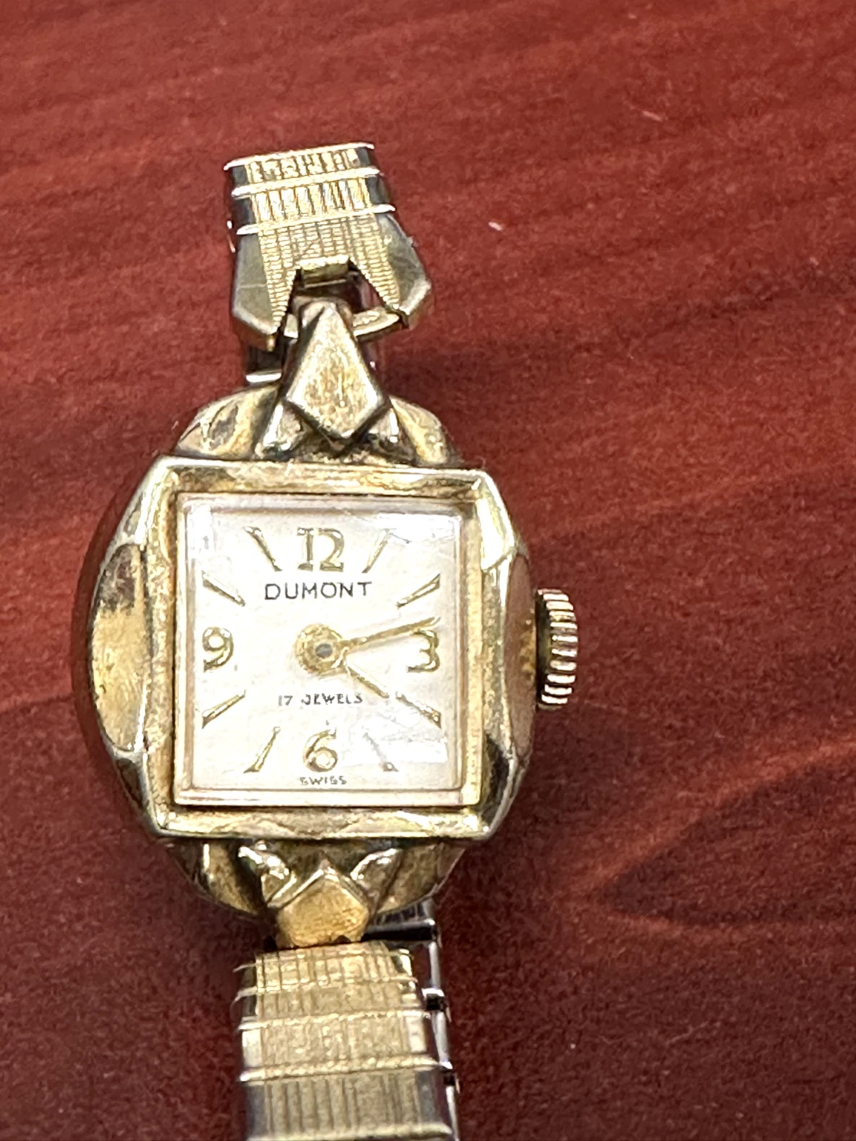 Vintage DUMONT Watch Gold Plated Wristwatch Working Ladies Swiss RARE 17 Rubis